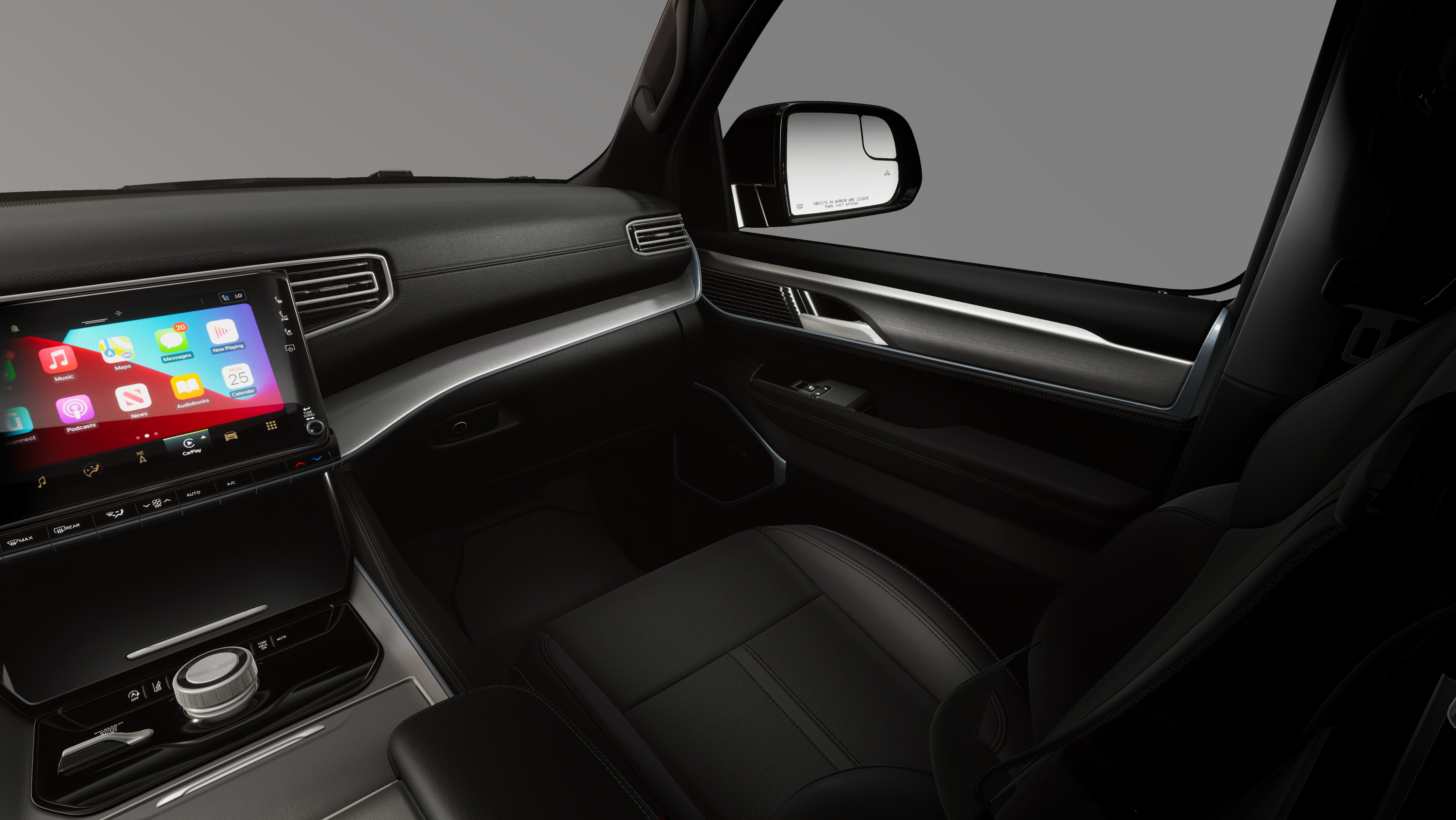 This vehicle comes with the following features and options:Altitude Appearance Package, Quick Order Package 29X Altitude (Black Exterior Accents, Titanium Daylight Opening Upper, Titanium Upper Grille Applique, and Wheels: 20 x 9 Aluminum Painted), 118 Mph Maximum Speed Calibration, 3.55 Rear Axle Ratio, 3rd row seats: bench, 4-Wheel Disc Brakes, 9 Speakers, ABS brakes, Air Conditioning, Alloy wheels, AM/FM radio: SiriusXM with 360L, Anti-whiplash front head restraints, Apple CarPlay/Android Auto, Audio memory, Auto Adjust in Reverse Exterior Mirrors, Auto High-beam Headlights, Auto-dimming door mirrors, Auto-Dimming Exterior Driver Mirror, Auto-dimming Rear-View mirror, Auto-leveling suspension, Automatic temperature control, Brake assist, Bumpers: body-color, Compass, Delay-off headlights, Driver door bin, Driver vanity mirror, Driver's Seat Mounted Armrest, Dual front impact airbags, Dual front side impact airbags, Electronic Stability Control, Emergency communication system: Jeep Connect, Exterior Mirrors Approach Lamps, Exterior Mirrors with Memory, Exterior Mirrors with Supplemental Signals, Exterior Parking Camera Rear, Four wheel independent suspension, Front anti-roll bar, Front Bucket Seats, Front Center Armrest w/Storage, Front dual zone A/C, Front fog lights, Front reading lights, Fully automatic headlights, Garage door transmitter, Heated door mirrors, Heated Exterior Mirrors, Heated front seats, Heated rear seats, Heated steering wheel, Illuminated entry, Knee airbag, Leather Trimmed Bucket Seats, Low tire pressure warning, Memory seat, MyFlexCare Service Plan, Navigation System, Normal Duty Suspension, Occupant sensing airbag, Outside temperature display, Overhead airbag, Overhead console, Panic alarm, Passenger door bin, Passenger seat mounted armrest, Passenger vanity mirror, Power door mirrors, Power driver seat, Power Liftgate, Power passenger seat, Power steering, Power windows, Radio data system, Radio: Uconnect 5 Nav with 12.0 Display, Rain sensing wipers, Rear air conditioning, Rear anti-roll bar, Rear reading lights, Rear seat center armrest, Rear window defroster, Rear window wiper, Reclining 3rd row seat, Remote keyless entry, Security system, Speed control, Speed-sensing steering, Speed-Sensitive Wipers, Split folding rear seat, Steering wheel memory, Steering wheel mounted audio controls, Tachometer, Telescoping steering wheel, Tilt steering wheel, Traction control, Trip computer, Turn signal indicator mirrors, Variably intermittent wipers, Ventilated front seats, Ventilated rear seats, and Voltmeter.