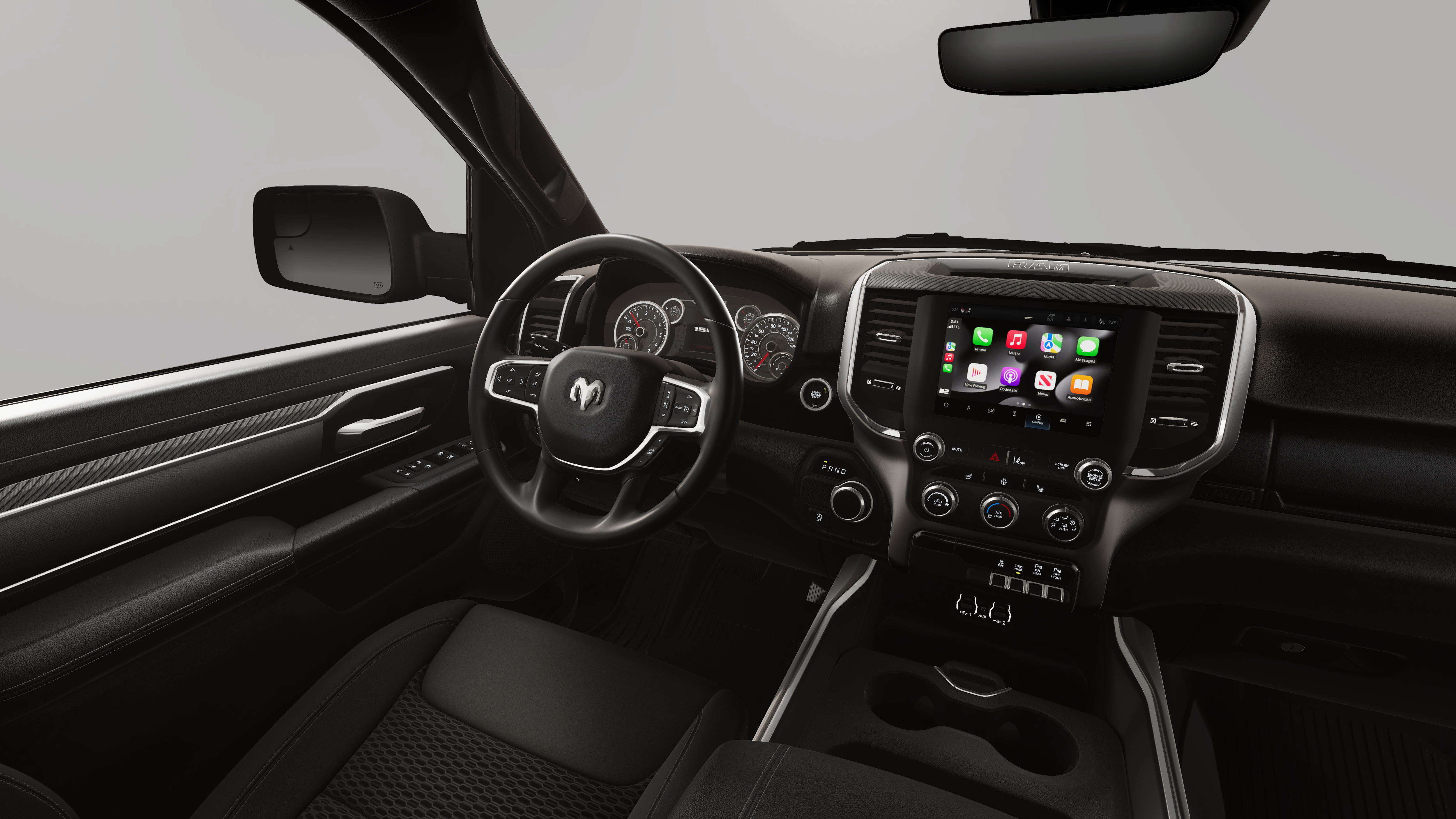This vehicle comes with the following features and options:Big Horn Level 1 Equipment Group (115V Auxiliary Power Outlet, 2nd Row in Floor Storage Bins, 3 Rear Seat Head Restraints, 4 Way Front Headrests, 400W Inverter, Auto Power-Folding Mirrors, Auto-Dimming Exterior Driver Mirror, Auto-Dimming Rear-View Mirror, Black Exterior Mirrors, Black Premium Power Mirrors, Body Color Fender Flares, Bucket Seats, Center Console Parts Module, Convex Wide-Angle Exterior Mirror Insert, Deluxe Cloth Bucket Seats, Exterior Mirrors Courtesy Lamps, Exterior Mirrors with Heating Element, Exterior Mirrors with Supplemental Signals, Front Seat Back Map Pockets, Full Length Floor Console, Glove Box Lamp, Heated Front Seats, Heated Steering Wheel, Leather Wrapped Steering Wheel, Manual Adjust 4-Way Front Passenger Seat, Power 2-Way Driver Lumbar Adjust, Power Adjust 8-Way Driver Seat, Power Adjustable Pedals, Rear 60/40 Folding Seat, Rear Center Armrest, Rear Dome with on/Off Switch Lamp, Rear Power Sliding Window, Rear Window Defroster, SiriusXM Radio Service, SiriusXM Satellite Radio, Steering Wheel Mounted Audio Controls, Sun Visors with Illuminated Vanity Mirrors, and Universal Garage Door Opener), Quick Order Package 21Z Big Horn, 3.21 Rear Axle Ratio, 4-Wheel Disc Brakes, 48V Belt Starter Generator, 4G LTE Wi-Fi Hot Spot, 6 Speakers, ABS brakes, Air Conditioning, Alloy wheels, AM/FM radio, Anti-Spin Differential Rear Axle, Apple CarPlay, Apple CarPlay/Android Auto, Auto High-beam Headlights, Brake assist, Bumpers: chrome, Cloth Bucket Seats, Compass, Connectivity - US/Canada, Delay-off headlights, Driver door bin, Dual front impact airbags, Dual front side impact airbags, Electronic Stability Control, Exterior Parking Camera Rear, Front anti-roll bar, Front Bucket Seats, Front Center Armrest w/Storage, Front fog lights, Front reading lights, Front wheel independent suspension, Fully automatic headlights, Global Telematics Box Module, Google Android Auto, GPS Antenna Input, Heated door mirrors, Illuminated entry, Integrated Center Stack Radio, Integrated Voice Command with Bluetooth®, Low tire pressure warning, Manual Adjust 4-Way Driver Seat, Manual Folding Exterior Mirrors, MOPAR Front and Rear Rubber Floor Mats, MyFlexCare Service Plan, Occupant sensing airbag, Outside temperature display, Overhead airbag, Overhead console, Panic alarm, Passenger door bin, Passenger vanity mirror, Power door mirrors, Power steering, Power windows, Radio data system, Radio: Uconnect 5 W with 8.4 Display, RAM Grille Badge - Chrome, Rear anti-roll bar, Rear step bumper, Remote keyless entry, Speed control, Supplier Part Tracking (J-1), Tachometer, Telescoping steering wheel, Tilt steering wheel, Traction control, Trip computer, USB Host Flip, Variably intermittent wipers, Voltmeter, and Wheels: 18 x 8 Cast-Aluminum Painted.