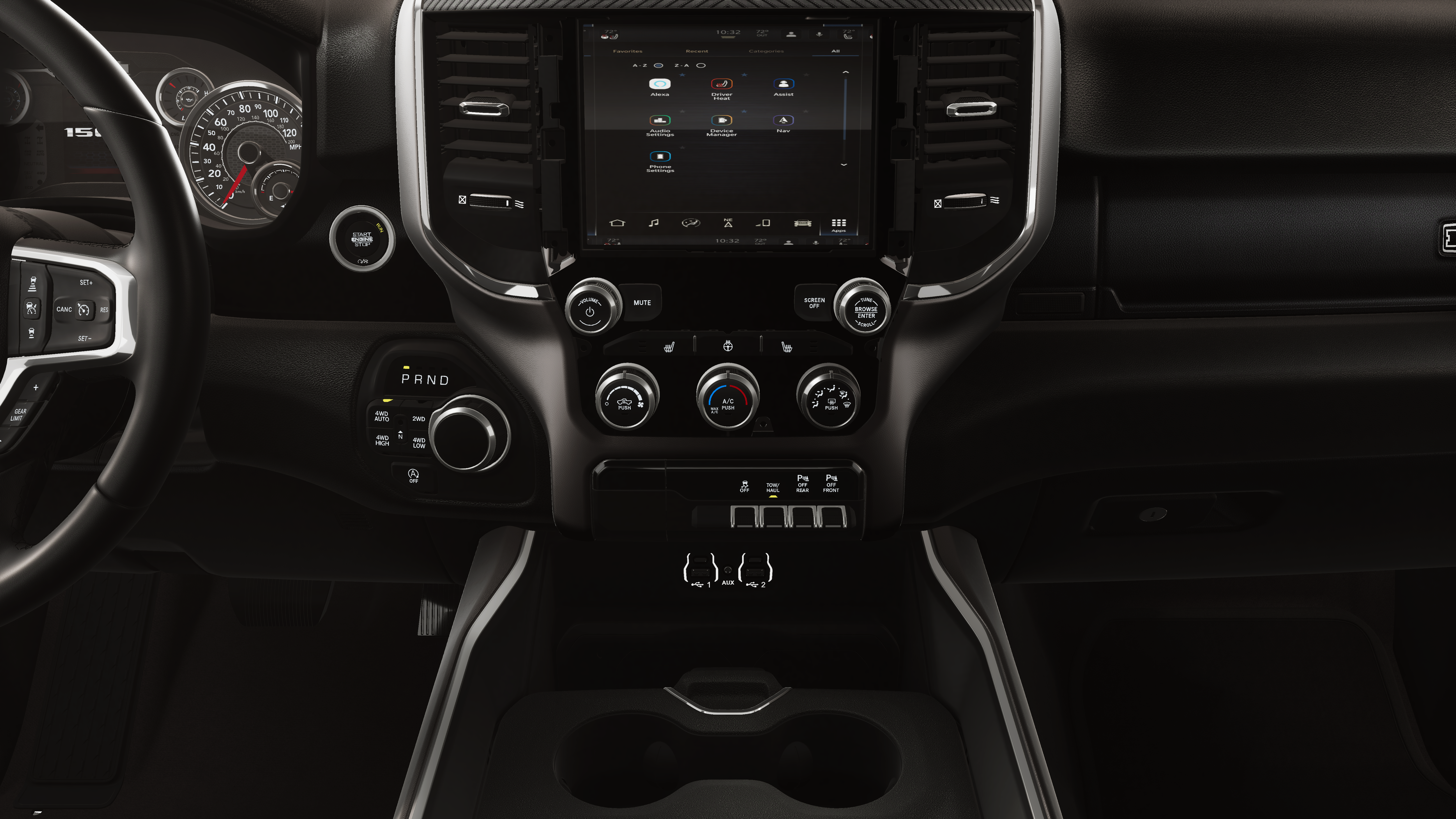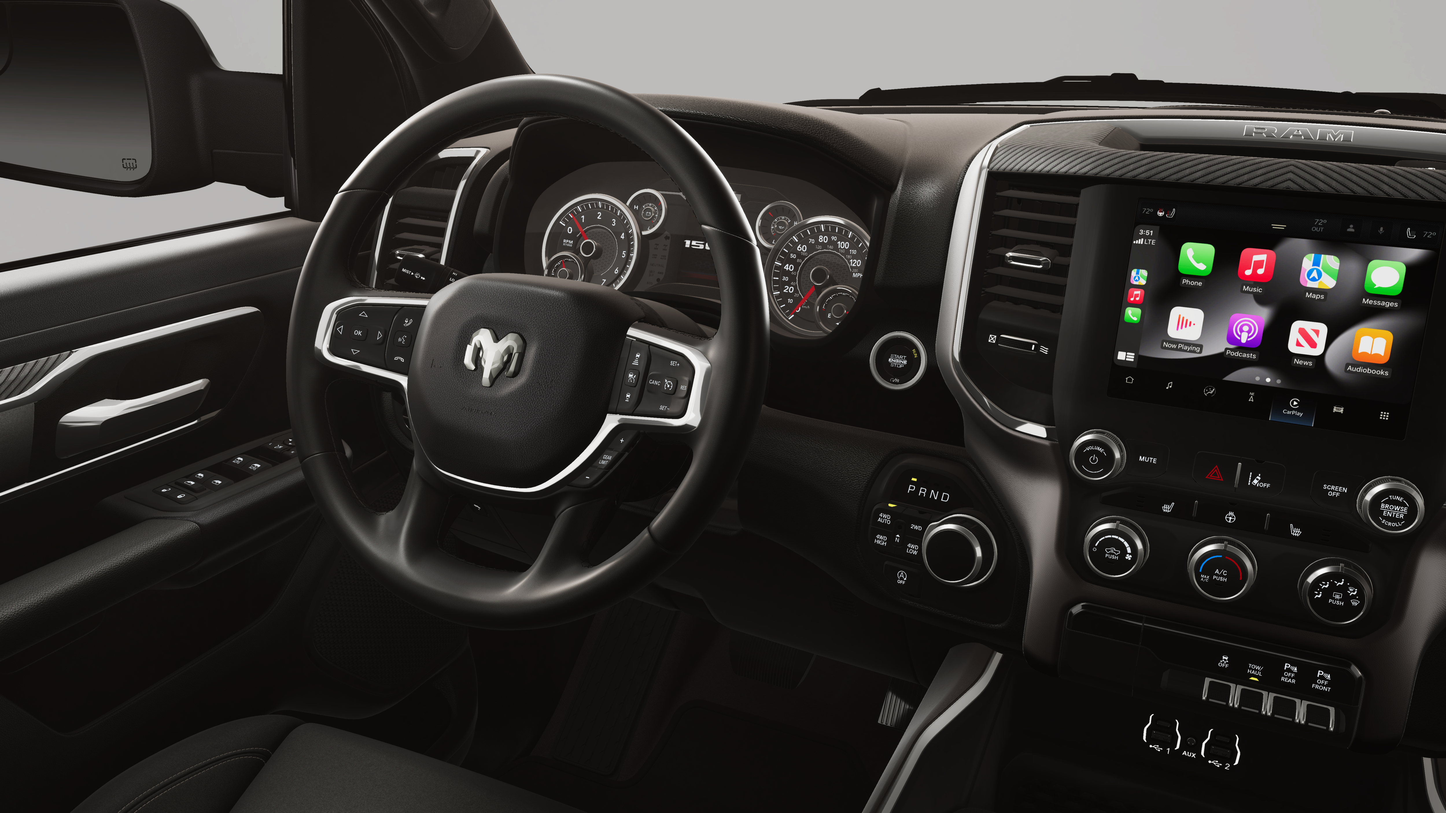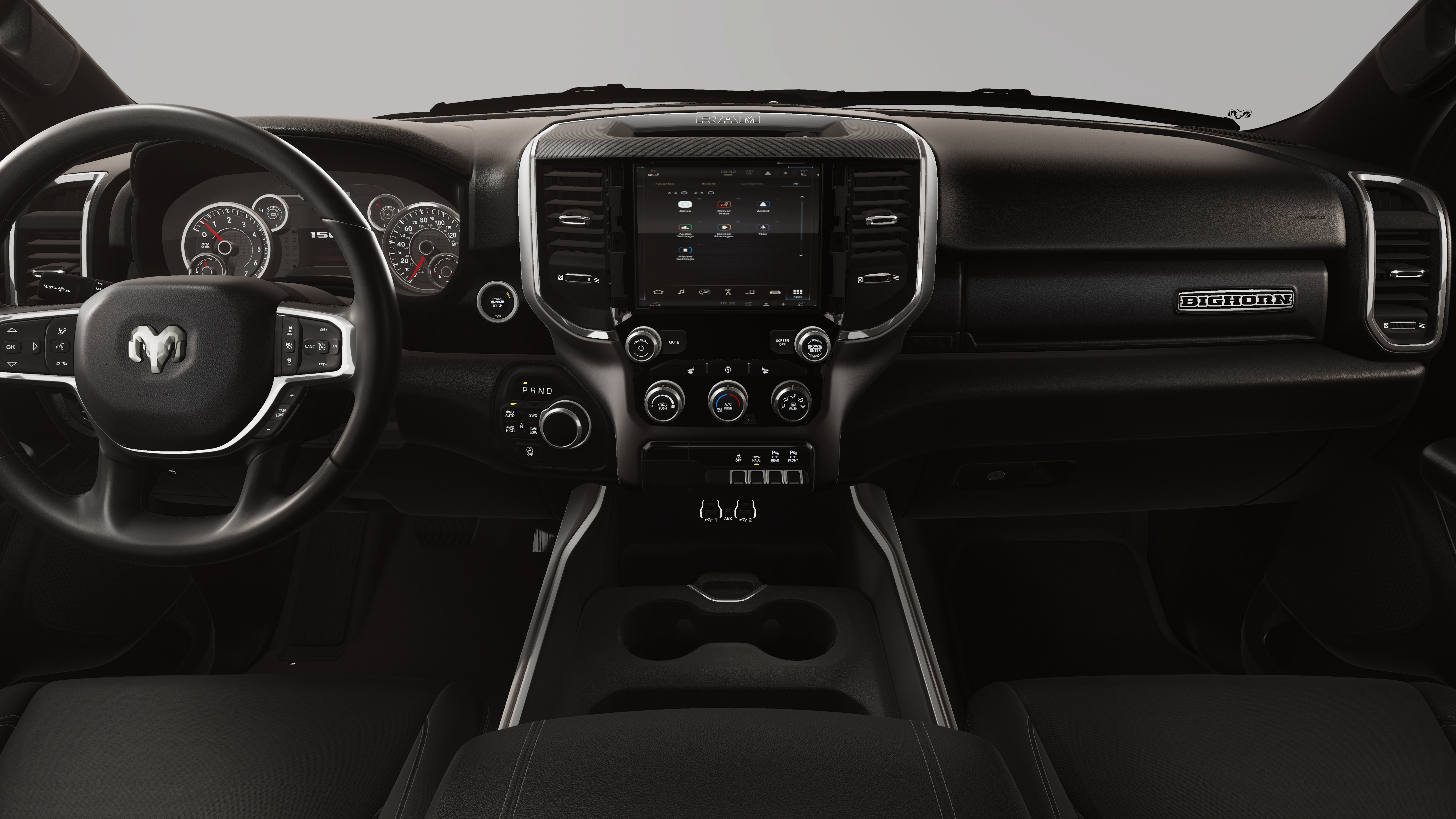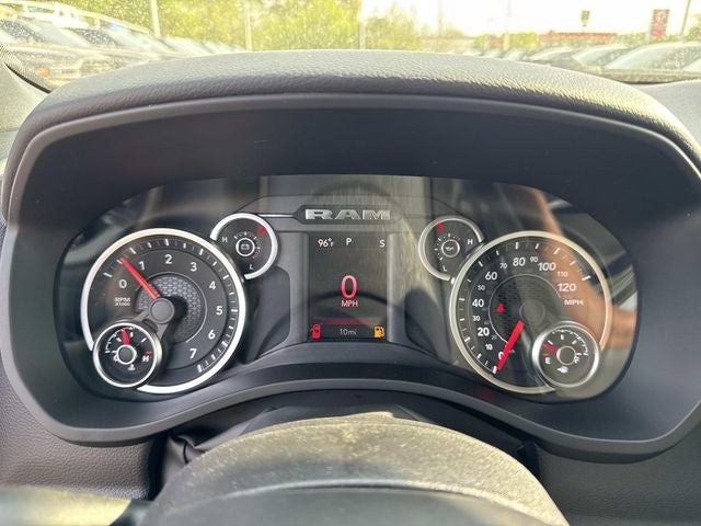 This vehicle comes with the following features and options:Big Horn Level 1 Equipment Group (115V Auxiliary Power Outlet, 2nd Row in Floor Storage Bins, 3 Rear Seat Head Restraints, 4 Way Front Headrests, 400W Inverter, Auto Power-Folding Mirrors, Auto-Dimming Exterior Driver Mirror, Auto-Dimming Rear-View Mirror, Black Exterior Mirrors, Black Premium Power Mirrors, Body Color Fender Flares, Bucket Seats, Center Console Parts Module, Convex Wide-Angle Exterior Mirror Insert, Deluxe Cloth Bucket Seats, Exterior Mirrors Courtesy Lamps, Exterior Mirrors with Heating Element, Exterior Mirrors with Supplemental Signals, Front Seat Back Map Pockets, Full Length Floor Console, Glove Box Lamp, Heated Front Seats, Heated Steering Wheel, Leather Wrapped Steering Wheel, Manual Adjust 4-Way Front Passenger Seat, Power 2-Way Driver Lumbar Adjust, Power Adjust 8-Way Driver Seat, Power Adjustable Pedals, Rear 60/40 Folding Seat, Rear Center Armrest, Rear Dome with on/Off Switch Lamp, Rear Power Sliding Window, Rear Window Defroster, SiriusXM Radio Service, SiriusXM Satellite Radio, Steering Wheel Mounted Audio Controls, Sun Visors with Illuminated Vanity Mirrors, and Universal Garage Door Opener), Night Edition (Accent Color Door Handles, Accent Color Premium Power Mirrors, Accent Color Tailgate Handle, Anti-Spin Differential Rear Axle, Black Exterior Truck Badging, Black Headlamp Bezels, Black Interior Accents, Black Painted Exterior Mirrors Caps, Black Tail Lamp Bezels, Body Color Front Bumper, Body Color Rear Bumper with Step Pads, Dual Exhaust with Black Tips, Grille Black Surround Black Mesh, RAM Grille Badge - Black, and Wheels: 20 x 9.0 Aluminum Painted Clad), Quick Order Package 27Z Big Horn, 4-Wheel Disc Brakes, 48V Belt Starter Generator, 4G LTE Wi-Fi Hot Spot, 6 Speakers, ABS brakes, Air Conditioning, Alloy wheels, AM/FM radio, Apple CarPlay, Apple CarPlay/Android Auto, Auto High-beam Headlights, Brake assist, Bumpers: chrome, Cloth Bucket Seats, Compass, Connectivity - US/Canada, Delay-off headlights, Driver door bin, Dual front impact airbags, Dual front side impact airbags, Electronic Stability Control, Front anti-roll bar, Front Bucket Seats, Front Center Armrest w/Storage, Front fog lights, Front reading lights, Front wheel independent suspension, Fully automatic headlights, Global Telematics Box Module, Google Android Auto, GPS Antenna Input, Heated door mirrors, Illuminated entry, Integrated Center Stack Radio, Integrated Voice Command with Bluetooth®, Low tire pressure warning, Manual Adjust 4-Way Driver Seat, Manual Folding Exterior Mirrors, MyFlexCare Service Plan, Occupant sensing airbag, Outside temperature display, Overhead airbag, Overhead console, Panic alarm, ParkView Rear Back-Up Camera, Passenger door bin, Passenger vanity mirror, Power door mirrors, Power steering, Power windows, Radio data system, Radio: Uconnect 5 W with 8.4 Display, RAM Grille Badge - Chrome, Rear anti-roll bar, Rear step bumper, Remote keyless entry, Speed control, Supplier Part Tracking (J-1), Tachometer, Telescoping steering wheel, Tilt steering wheel, Traction control, Trip computer, USB Host Flip, Variably intermittent wipers, and Voltmeter.