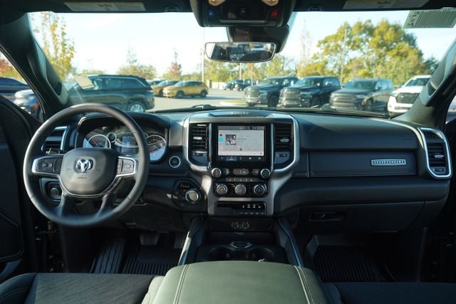 This vehicle comes with the following features and options:Bed Utility Group (Exterior 115V AC Outlet, MOPAR 4 Adjustable Cargo Tie-Down Hooks, MOPAR Spray in Bedliner, and Pick-Up Box Lighting), Big Horn Level 1 Equipment Group (115V Auxiliary Power Outlet, 2nd Row in Floor Storage Bins, 3 Rear Seat Head Restraints, 4 Way Front Headrests, 400W Inverter, Auto Power-Folding Mirrors, Auto-Dimming Exterior Driver Mirror, Auto-Dimming Rear-View Mirror, Black Exterior Mirrors, Black Premium Power Mirrors, Body Color Fender Flares, Bucket Seats, Center Console Parts Module, Convex Wide-Angle Exterior Mirror Insert, Deluxe Cloth Bucket Seats, Exterior Mirrors Courtesy Lamps, Exterior Mirrors with Heating Element, Exterior Mirrors with Supplemental Signals, Front Seat Back Map Pockets, Full Length Floor Console, Glove Box Lamp, Heated Front Seats, Heated Steering Wheel, Leather Wrapped Steering Wheel, Manual Adjust 4-Way Front Passenger Seat, Power 2-Way Driver Lumbar Adjust, Power Adjust 8-Way Driver Seat, Power Adjustable Pedals, Rear 60/40 Folding Seat, Rear Center Armrest, Rear Dome with on/Off Switch Lamp, Rear Power Sliding Window, Rear Window Defroster, SiriusXM Radio Service, SiriusXM Satellite Radio, Steering Wheel Mounted Audio Controls, Sun Visors with Illuminated Vanity Mirrors, and Universal Garage Door Opener), Quick Order Package 27Z Big Horn, Sport Appearance Package (Black Interior Accents, Body Color Door Handles, Body Color Front Bumper, Body Color Rear Bumper with Step Pads, Body Color Tailgate Handle, Grille Surround 1 Body Color Texture 1 Black, and RAM Grille Badge - Chrome), 33 Gallon Fuel Tank, 4-Wheel Disc Brakes, 48V Belt Starter Generator, 4G LTE Wi-Fi Hot Spot, 6 Speakers, ABS brakes, Air Conditioning, Alloy wheels, AM/FM radio, Apple CarPlay, Apple CarPlay/Android Auto, Auto High-beam Headlights, Brake assist, Bumpers: chrome, Cloth Bucket Seats, Compass, Connectivity - US/Canada, Delay-off headlights, Driver door bin, Dual front impact airbags, Dual front side impact airbags, Electronic Stability Control, Front anti-roll bar, Front Bucket Seats, Front Center Armrest w/Storage, Front fog lights, Front reading lights, Front wheel independent suspension, Fully automatic headlights, Global Telematics Box Module, Google Android Auto, GPS Antenna Input, Heated door mirrors, Illuminated entry, Integrated Center Stack Radio, Integrated Voice Command with Bluetooth®, Low tire pressure warning, Manual Adjust 4-Way Driver Seat, Manual Folding Exterior Mirrors, MOPAR Front and Rear Rubber Floor Mats, Occupant sensing airbag, Outside temperature display, Overhead airbag, Overhead console, Panic alarm, ParkView Rear Back-Up Camera, Passenger door bin, Passenger vanity mirror, Power door mirrors, Power steering, Power windows, Radio data system, Radio: Uconnect 5 W with 8.4 Display, Rear anti-roll bar, Rear step bumper, Rear Wheelhouse Liners, Remote keyless entry, Speed control, Supplier Part Tracking (J-1), Tachometer, Telescoping steering wheel, Tilt steering wheel, Traction control, Trip computer, USB Host Flip, Variably intermittent wipers, Voltmeter, and Wheels: 20 x 9 Aluminum Chrome Clad.