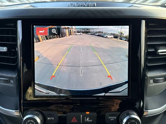 This vehicle comes with the following features and options:Bed Utility Group (Exterior 115V AC Outlet, MOPAR 4 Adjustable Cargo Tie-Down Hooks, MOPAR Spray in Bedliner, and Pick-Up Box Lighting), Big Horn Level 1 Equipment Group (115V Auxiliary Power Outlet, 2nd Row in Floor Storage Bins, 3 Rear Seat Head Restraints, 4 Way Front Headrests, 400W Inverter, Auto Power-Folding Mirrors, Auto-Dimming Exterior Driver Mirror, Auto-Dimming Rear-View Mirror, Black Exterior Mirrors, Black Premium Power Mirrors, Body Color Fender Flares, Bucket Seats, Center Console Parts Module, Convex Wide-Angle Exterior Mirror Insert, Deluxe Cloth Bucket Seats, Exterior Mirrors Courtesy Lamps, Exterior Mirrors with Heating Element, Exterior Mirrors with Supplemental Signals, Front Seat Back Map Pockets, Full Length Floor Console, Glove Box Lamp, Heated Front Seats, Heated Steering Wheel, Leather Wrapped Steering Wheel, Manual Adjust 4-Way Front Passenger Seat, Power 2-Way Driver Lumbar Adjust, Power Adjust 8-Way Driver Seat, Power Adjustable Pedals, Rear 60/40 Folding Seat, Rear Center Armrest, Rear Dome with on/Off Switch Lamp, Rear Power Sliding Window, Rear Window Defroster, SiriusXM Radio Service, SiriusXM Satellite Radio, Steering Wheel Mounted Audio Controls, Sun Visors with Illuminated Vanity Mirrors, and Universal Garage Door Opener), Quick Order Package 27Z Big Horn, 33 Gallon Fuel Tank, 4-Wheel Disc Brakes, 48V Belt Starter Generator, 4G LTE Wi-Fi Hot Spot, 6 Speakers, 9 Amplified Speakers with Subwoofer, ABS brakes, Air Conditioning, Alloy wheels, AM/FM radio, Apple CarPlay, Apple CarPlay/Android Auto, Auto High-beam Headlights, Brake assist, Bumpers: chrome, Cloth Bucket Seats, Compass, Connectivity - US/Canada, Delay-off headlights, Driver door bin, Dual front impact airbags, Dual front side impact airbags, Electronic Stability Control, Front anti-roll bar, Front Bucket Seats, Front Center Armrest w/Storage, Front fog lights, Front reading lights, Front wheel independent suspension, Fully automatic headlights, Global Telematics Box Module, Google Android Auto, GPS Antenna Input, Heated door mirrors, Illuminated entry, Integrated Center Stack Radio, Integrated Voice Command with Bluetooth®, Low tire pressure warning, Manual Adjust 4-Way Driver Seat, Manual Folding Exterior Mirrors, MOPAR Front and Rear Rubber Floor Mats, MyFlexCare Service Plan, Occupant sensing airbag, Outside temperature display, Overhead airbag, Overhead console, Panic alarm, ParkView Rear Back-Up Camera, Passenger door bin, Passenger vanity mirror, Power door mirrors, Power steering, Power windows, Radio data system, Radio: Uconnect 5 W with 8.4 Display, RAM Grille Badge - Chrome, Rear anti-roll bar, Rear step bumper, Remote keyless entry, Speed control, Supplier Part Tracking (J-1), Tachometer, Telescoping steering wheel, Tilt steering wheel, Traction control, Trailer Brake Control, Trip computer, USB Host Flip, Variably intermittent wipers, Voltmeter, and Wheels: 18 x 8 Cast-Aluminum Painted.