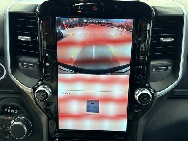This vehicle comes with the following features and options:Big Horn Level 2 Equipment Group (115V Auxiliary Power Outlet, 115V Auxiliary Rear Power Outlet, 12 Touchscreen Display, 2nd Row in Floor Storage Bins, 3 Rear Seat Head Restraints, 4 Way Front Headrests, 400W Inverter, 4G LTE Wi-Fi Hot Spot, 9 Amplified Speakers with Subwoofer, Air Conditioning ATC with Dual Zone Control, Apple CarPlay, Auto Power-Folding Mirrors, Auto-Dimming Exterior Driver Mirror, Auto-Dimming Rear-View Mirror, Black Exterior Mirrors, Black Premium Power Mirrors, Body Color Fender Flares, Bucket Seats, Center Console Parts Module, Cluster 7.0 TFT Color Display, Configurable Drive Mode, Connected Travel and Traffic Services, Connectivity - US/Canada, Convex Wide-Angle Exterior Mirror Insert, Deluxe Cloth Bucket Seats, Disassociated Touchscreen Display, Exterior Mirrors Courtesy Lamps, Exterior Mirrors with Heating Element, Exterior Mirrors with Supplemental Signals, Front Seat Back Map Pockets, Full Length Floor Console, Global Telematics Box Module, Glove Box Lamp, Google Android Auto, GPS Antenna Input, GPS Navigation, HD Radio, Heated Front Seats, Heated Steering Wheel, Integrated Center Stack Radio, Integrated Voice Command with Bluetooth®, Leather Wrapped Steering Wheel, LED Dome Lamp with on/Off Switch, LED Footwell Lighting, Manual Adjust 4-Way Front Passenger Seat, Media Hub with 2 Charge Only USBs, Overhead LED Lamps, Power 2-Way Driver Lumbar Adjust, Power Adjust 8-Way Driver Seat, Power Adjustable Pedals, Premium Overhead Console, Radio: Uconnect 5 Navigation with 12.0 Display, Rear 60/40 Folding Seat, Rear Center Armrest, Rear Power Sliding Window, Rear Window Defroster, Remote Tailgate Release, Security Alarm, SiriusXM Radio Service, SiriusXM with 360L, Steering Wheel Mounted Audio Controls, Sun Visors with Illuminated Vanity Mirrors, Universal Garage Door Opener, and USB Host Flip), Quick Order Package 27Z Big Horn, Sport Appearance Package (Black Interior Accents, Body Color Door Handles, Body Color Front Bumper, Body Color Rear Bumper with Step Pads, Body Color Tailgate Handle, Grille Surround 1 Body Color Texture 1 Black, and RAM Grille Badge - Chrome), 4-Wheel Disc Brakes, 48V Belt Starter Generator, 6 Speakers, ABS brakes, Air Conditioning, Alloy wheels, AM/FM radio, Apple CarPlay/Android Auto, Auto High-beam Headlights, Brake assist, Bumpers: chrome, Cloth Bucket Seats, Compass, Delay-off headlights, Driver door bin, Dual front impact airbags, Dual front side impact airbags, Electronic Stability Control, Front anti-roll bar, Front Bucket Seats, Front Center Armrest w/Storage, Front fog lights, Front reading lights, Front wheel independent suspension, Fully automatic headlights, Heated door mirrors, Illuminated entry, Low tire pressure warning, Manual Adjust 4-Way Driver Seat, Manual Folding Exterior Mirrors, MOPAR Front and Rear Rubber Floor Mats, MyFlexCare Service Plan, Occupant sensing airbag, Outside temperature display, Overhead airbag, Overhead console, Panic alarm, ParkView Rear Back-Up Camera, Passenger door bin, Passenger vanity mirror, Power door mirrors, Power steering, Power windows, Radio data system, Radio: Uconnect 5 W with 8.4 Display, Rear anti-roll bar, Rear step bumper, Remote keyless entry, Speed control, Supplier Part Tracking (J-1), Tachometer, Telescoping steering wheel, Tilt steering wheel, Traction control, Trip computer, Variably intermittent wipers, and Voltmeter.