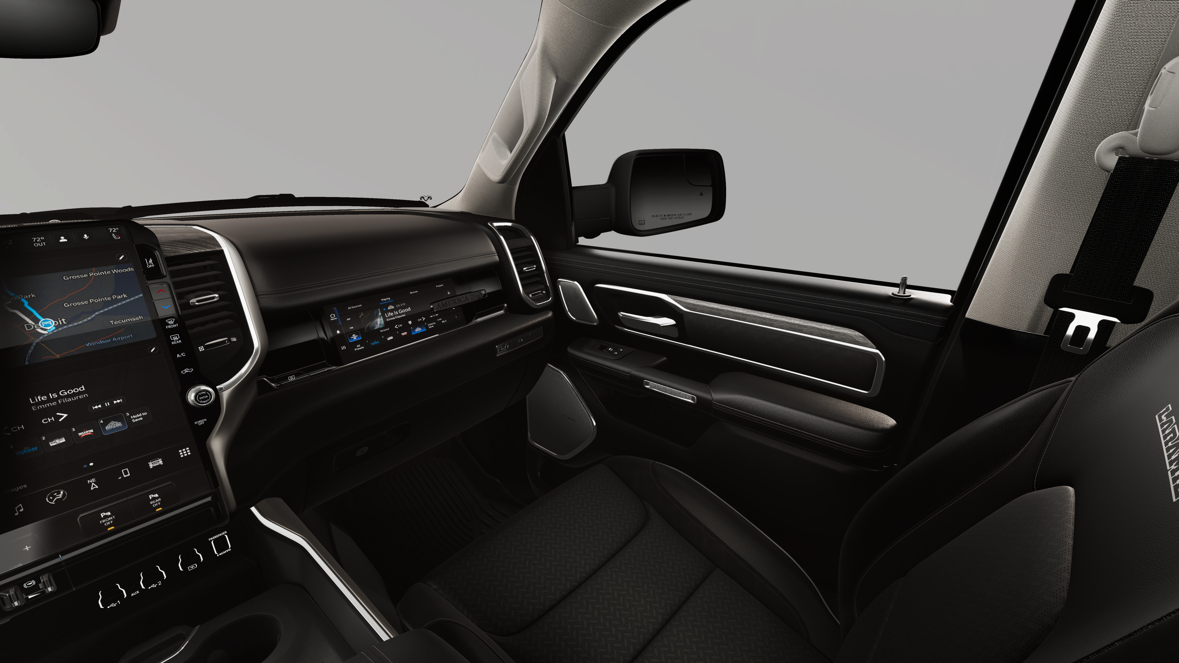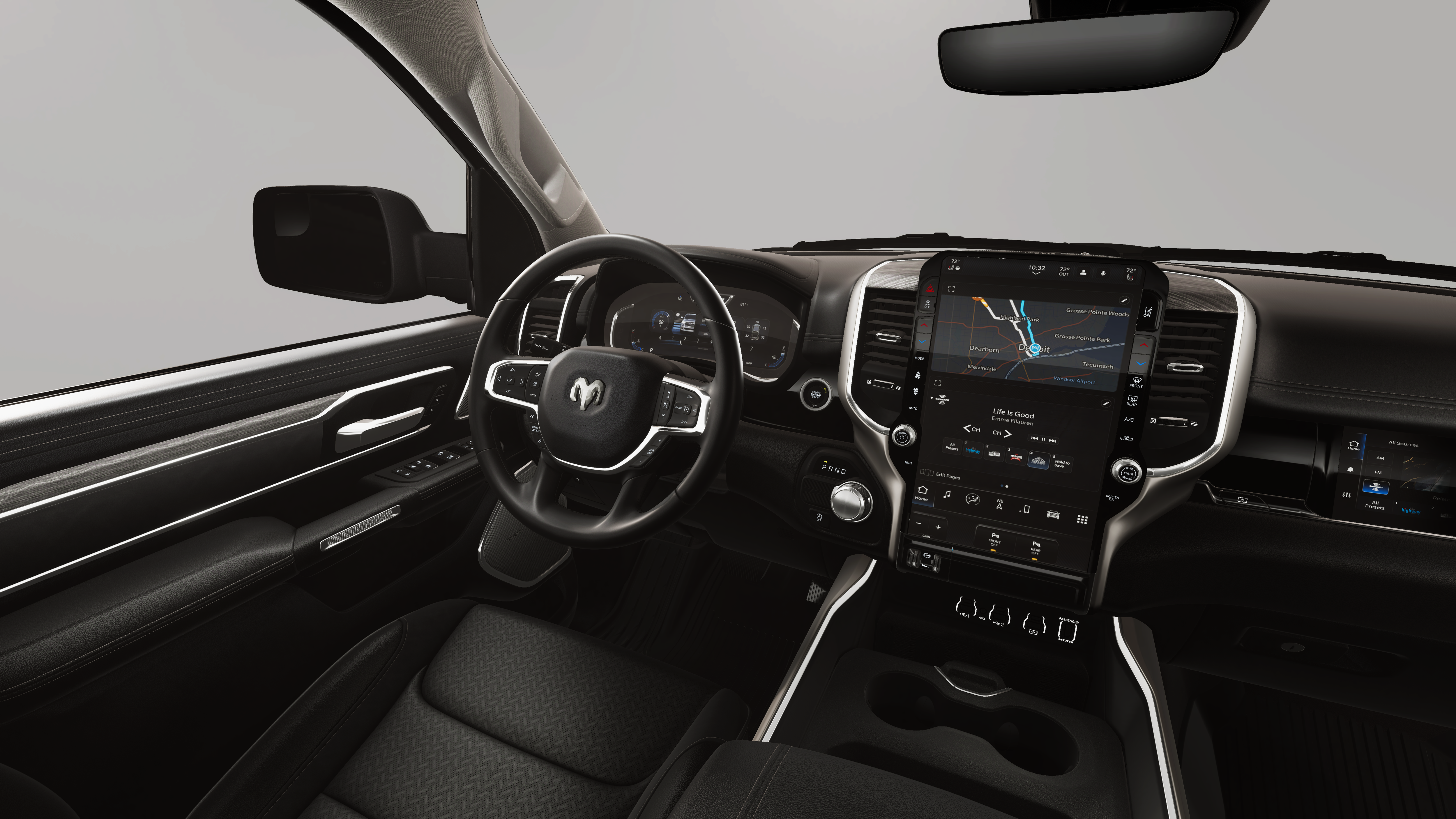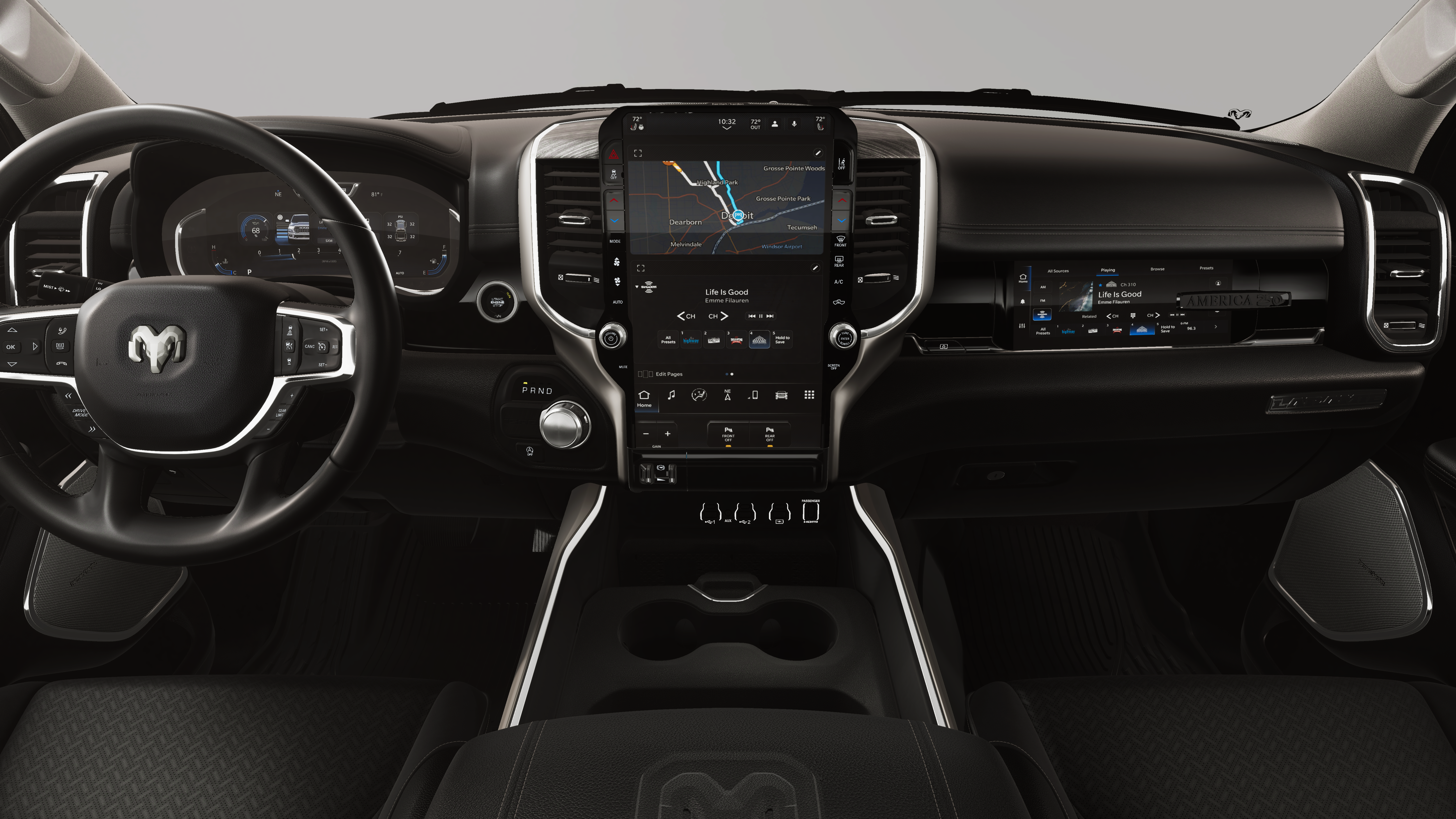 This vehicle comes with the following features and options:Bed Utility Group (Exterior 115V AC Outlet, MOPAR 4 Adjustable Cargo Tie-Down Hooks, and MOPAR Spray in Bedliner), Laramie Level 2 Equipment Group (14.4 Touchscreen Display, 4G LTE Wi-Fi Hot Spot, Cluster 12 TFT Color Display, Connected Travel and Traffic Services, Connectivity - US/Canada, Front Passenger Interactive Display, GPS Navigation, Harman/Kardon 19 Speaker Premium Sound, Integrated Center Stack Radio, Integrated Voice Command with Bluetooth®, Power Tailgate, Radio: Uconnect 5 Nav with 14.4 Display, Rain Sensitive Windshield Wipers, SiriusXM Radio Service, SiriusXM with 360L, and USB Host Flip), Laramie Southwest Edition (Accent Color Premium Power Mirrors, Auto Power-Folding Mirrors, Auto-Dimming Exterior Driver Mirror, Black Painted Exterior Mirrors Caps, Body Color Front Bumper, Body Color Rear Bumper with Step Pads, Convex Wide-Angle Exterior Mirror Insert, Dome Dual LED Reading Lamp, Dual-Pane Panoramic Sunroof, Exterior Mirrors Courtesy Lamps, Exterior Mirrors with Heating Element, Exterior Mirrors with Memory, Exterior Mirrors with Supplemental Signals, Grille Surround 3 Body Color Tex 4 Chrome, LED Dome/Reading Lamp, MOPAR Lockable Console Storage, Power Deployable Running Boards, RAM Grille Badge - Chrome, Tow Hooks, and Trailer Brake Control), Quick Order Package 21H Laramie, 10 Speakers, 3.21 Rear Axle Ratio, 4-Wheel Disc Brakes, ABS brakes, Adjustable pedals, Air Conditioning, Alloy wheels, AM/FM radio: SiriusXM with 360L, Anti-Spin Differential Rear Axle, Apple CarPlay/Android Auto, Audio memory, Auto High-beam Headlights, Auto-dimming door mirrors, Auto-dimming Rear-View mirror, Automatic temperature control, Brake assist, Bumpers: chrome, Chrome Exterior Mirrors, Compass, Delay-off headlights, Driver door bin, Driver vanity mirror, Dual front impact airbags, Dual front side impact airbags, Electronic Stability Control, Exterior Parking Camera Rear, Front anti-roll bar, Front Bucket Seats, Front Center Armrest w/Storage, Front dual zone A/C, Front fog lights, Front reading lights, Front wheel independent suspension, Fully automatic headlights, Garage door transmitter, Heated door mirrors, Heated front seats, Heated rear seats, Heated steering wheel, Illuminated entry, Leather steering wheel, Leather Trimmed Bucket Seats, Low tire pressure warning, Memory seat, MOPAR Front and Rear Rubber Floor Mats, MyFlexCare Service Plan, Navigation System, Occupant sensing airbag, Outside temperature display, Overhead airbag, Overhead console, Panic alarm, Passenger door bin, Passenger vanity mirror, Pedal memory, Power door mirrors, Power driver seat, Power passenger seat, Power steering, Power windows, Radio data system, Radio: Uconnect 5 Navigation with 12.0 Display, Rear anti-roll bar, Rear reading lights, Rear seat center armrest, Rear step bumper, Remote keyless entry, Security system, Speed control, Split folding rear seat, Steering wheel mounted audio controls, Tachometer, Telescoping steering wheel, Tilt steering wheel, Traction control, Trip computer, Turn signal indicator mirrors, Variably intermittent wipers, Ventilated front seats, Voltmeter, and Wheels: 20 x 9 Premium Paint/Polish.