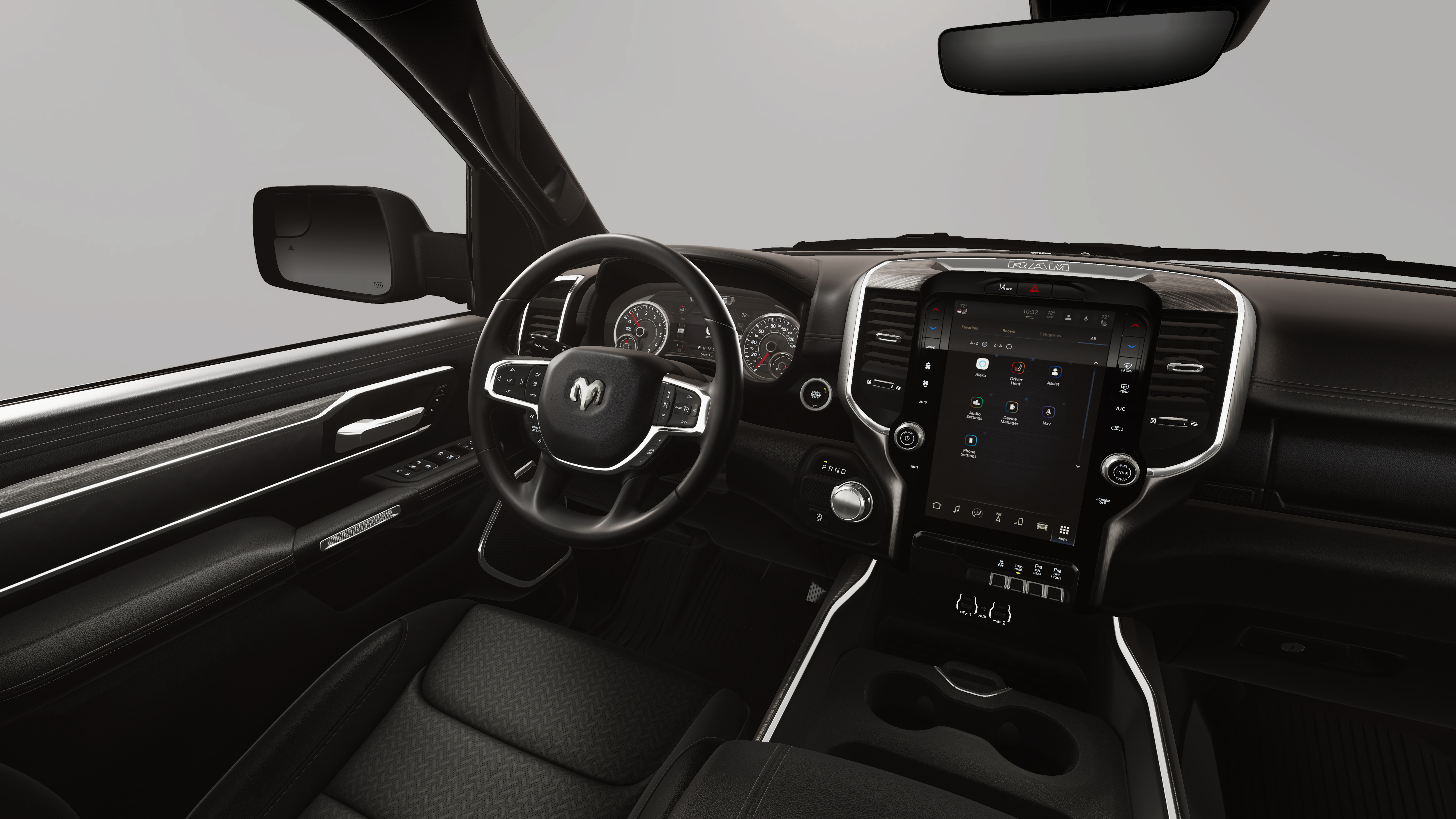 This vehicle comes with the following features and options:Quick Order Package 21H Laramie, Sport Appearance Package (Accent Color Premium Power Mirrors, Auto Power-Folding Mirrors, Auto-Dimming Exterior Driver Mirror, Black Interior Accents, Black Painted Exterior Mirrors Caps, Body Color Front Bumper, Body Color Rear Bumper with Step Pads, Bridgestone Brand Tires, Convex Wide-Angle Exterior Mirror Insert, Exterior Mirrors Courtesy Lamps, Exterior Mirrors with Heating Element, Exterior Mirrors with Memory, Exterior Mirrors with Supplemental Signals, Grille Surround 3 Body Color Tex 2 Black, RAM Grille Badge - Chrome, and Sport Performance Hood), 10 Speakers, 3.21 Rear Axle Ratio, 4-Wheel Disc Brakes, 4G LTE Wi-Fi Hot Spot, ABS brakes, Air Conditioning, Alloy wheels, AM/FM radio: SiriusXM with 360L, Anti-Spin Differential Rear Axle, Apple CarPlay/Android Auto, Audio memory, Auto High-beam Headlights, Auto-dimming door mirrors, Auto-dimming Rear-View mirror, Automatic temperature control, Brake assist, Bumpers: chrome, Chrome Exterior Mirrors, Compass, Connected Travel and Traffic Services, Connectivity - US/Canada, Delay-off headlights, Driver door bin, Driver vanity mirror, Dual front impact airbags, Dual front side impact airbags, Electronic Stability Control, Exterior Parking Camera Rear, Front anti-roll bar, Front Bucket Seats, Front Center Armrest w/Storage, Front dual zone A/C, Front fog lights, Front reading lights, Front wheel independent suspension, Fully automatic headlights, Garage door transmitter, GPS Navigation, Heated door mirrors, Heated front seats, Heated rear seats, Heated steering wheel, Illuminated entry, Integrated Center Stack Radio, Integrated Voice Command with Bluetooth®, Leather steering wheel, Leather Trimmed Bucket Seats, Low tire pressure warning, Memory seat, MOPAR Front and Rear Rubber Floor Mats, MyFlexCare Service Plan, Navigation System, Occupant sensing airbag, Outside temperature display, Overhead airbag, Overhead console, Panic alarm, Passenger door bin, Passenger vanity mirror, Power door mirrors, Power driver seat, Power passenger seat, Power steering, Power windows, Radio data system, Radio: Uconnect 5 Navigation with 12.0 Display, Rear anti-roll bar, Rear reading lights, Rear seat center armrest, Rear step bumper, Remote keyless entry, Security system, SiriusXM Radio Service, SiriusXM with 360L, Speed control, Split folding rear seat, Steering wheel mounted audio controls, Tachometer, Telescoping steering wheel, Tilt steering wheel, Traction control, Trip computer, Turn signal indicator mirrors, USB Host Flip, Variably intermittent wipers, Ventilated front seats, Voltmeter, and Wheels: 20 x 9 Premium Paint/Polish.
