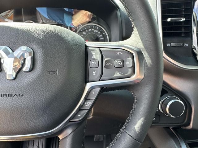 This vehicle comes with the following features and options:Big Horn Level 1 Equipment Group (115V Auxiliary Power Outlet, 2nd Row in Floor Storage Bins, 3 Rear Seat Head Restraints, 4 Way Front Headrests, 400W Inverter, Auto Power-Folding Mirrors, Auto-Dimming Exterior Driver Mirror, Auto-Dimming Rear-View Mirror, Black Exterior Mirrors, Black Premium Power Mirrors, Body Color Fender Flares, Bucket Seats, Center Console Parts Module, Convex Wide-Angle Exterior Mirror Insert, Deluxe Cloth Bucket Seats, Exterior Mirrors Courtesy Lamps, Exterior Mirrors with Heating Element, Exterior Mirrors with Supplemental Signals, Front Seat Back Map Pockets, Full Length Floor Console, Glove Box Lamp, Heated Front Seats, Heated Steering Wheel, Leather Wrapped Steering Wheel, Manual Adjust 4-Way Front Passenger Seat, Power 2-Way Driver Lumbar Adjust, Power Adjust 8-Way Driver Seat, Power Adjustable Pedals, Rear 60/40 Folding Seat, Rear Center Armrest, Rear Dome with on/Off Switch Lamp, Rear Power Sliding Window, Rear Window Defroster, SiriusXM Radio Service, SiriusXM Satellite Radio, Steering Wheel Mounted Audio Controls, Sun Visors with Illuminated Vanity Mirrors, and Universal Garage Door Opener), Quick Order Package 21Z Big Horn, 4-Wheel Disc Brakes, 48V Belt Starter Generator, 4G LTE Wi-Fi Hot Spot, 6 Speakers, ABS brakes, Air Conditioning, Alloy wheels, AM/FM radio, Anti-Spin Differential Rear Axle, Apple CarPlay, Apple CarPlay/Android Auto, Auto High-beam Headlights, Brake assist, Bumpers: chrome, Cloth Bucket Seats, Compass, Connectivity - US/Canada, Delay-off headlights, Driver door bin, Dual front impact airbags, Dual front side impact airbags, Electronic Stability Control, Front anti-roll bar, Front Bucket Seats, Front Center Armrest w/Storage, Front fog lights, Front License Plate Bracket, Front reading lights, Front wheel independent suspension, Fully automatic headlights, Global Telematics Box Module, Google Android Auto, GPS Antenna Input, Heated door mirrors, Illuminated entry, Integrated Center Stack Radio, Integrated Voice Command with Bluetooth®, Low tire pressure warning, Manual Adjust 4-Way Driver Seat, Manual Folding Exterior Mirrors, Manufacturer's Statement of Origin, MOPAR Front and Rear Rubber Floor Mats, Occupant sensing airbag, Outside temperature display, Overhead airbag, Overhead console, Panic alarm, ParkView Rear Back-Up Camera, Passenger door bin, Passenger vanity mirror, Power door mirrors, Power steering, Power windows, Radio data system, Radio: Uconnect 5 W with 8.4 Display, RAM Grille Badge - Chrome, Rear anti-roll bar, Rear step bumper, Rear Underseat Compartment Storage, Rear Wheelhouse Liners, Remote keyless entry, Speed control, Supplier Part Tracking (J-1), Tachometer, Telescoping steering wheel, Tilt steering wheel, Traction control, Trailer Brake Control, Trip computer, USB Host Flip, Variably intermittent wipers, Voltmeter, and Wheels: 20 x 9 Aluminum Chrome Clad.