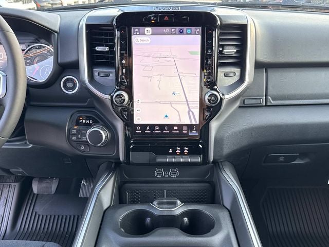 This vehicle comes with the following features and options:Big Horn Level 2 Equipment Group (115V Auxiliary Power Outlet, 115V Auxiliary Rear Power Outlet, 12 Touchscreen Display, 2nd Row in Floor Storage Bins, 3 Rear Seat Head Restraints, 4 Way Front Headrests, 400W Inverter, 4G LTE Wi-Fi Hot Spot, 9 Amplified Speakers with Subwoofer, Air Conditioning ATC with Dual Zone Control, Apple CarPlay, Auto Power-Folding Mirrors, Auto-Dimming Exterior Driver Mirror, Auto-Dimming Rear-View Mirror, Black Exterior Mirrors, Black Premium Power Mirrors, Body Color Fender Flares, Bucket Seats, Center Console Parts Module, Cluster 7.0 TFT Color Display, Configurable Drive Mode, Connected Travel and Traffic Services, Connectivity - US/Canada, Convex Wide-Angle Exterior Mirror Insert, Deluxe Cloth Bucket Seats, Disassociated Touchscreen Display, Exterior Mirrors Courtesy Lamps, Exterior Mirrors with Heating Element, Exterior Mirrors with Supplemental Signals, Front Seat Back Map Pockets, Full Length Floor Console, Global Telematics Box Module, Glove Box Lamp, Google Android Auto, GPS Antenna Input, GPS Navigation, HD Radio, Heated Front Seats, Heated Steering Wheel, Integrated Center Stack Radio, Integrated Voice Command with Bluetooth®, Leather Wrapped Steering Wheel, LED Dome Lamp with on/Off Switch, LED Footwell Lighting, Manual Adjust 4-Way Front Passenger Seat, Media Hub with 2 Charge Only USBs, Overhead LED Lamps, Power 2-Way Driver Lumbar Adjust, Power Adjust 8-Way Driver Seat, Power Adjustable Pedals, Premium Overhead Console, Radio: Uconnect 5 Navigation with 12.0 Display, Rear 60/40 Folding Seat, Rear Center Armrest, Rear Power Sliding Window, Rear Window Defroster, Remote Tailgate Release, Security Alarm, SiriusXM Radio Service, SiriusXM with 360L, Steering Wheel Mounted Audio Controls, Sun Visors with Illuminated Vanity Mirrors, Universal Garage Door Opener, and USB Host Flip), Quick Order Package 27Z Big Horn, Sport Appearance Package (Black Interior Accents, Body Color Door Handles, Body Color Front Bumper, Body Color Rear Bumper with Step Pads, Body Color Tailgate Handle, Grille Surround 1 Body Color Texture 1 Black, and RAM Grille Badge - Chrome), 4-Wheel Disc Brakes, 48V Belt Starter Generator, 6 Speakers, ABS brakes, Air Conditioning, Alloy wheels, AM/FM radio, Apple CarPlay/Android Auto, Auto High-beam Headlights, Brake assist, Bumpers: chrome, Cloth Bucket Seats, Compass, Delay-off headlights, Driver door bin, Dual front impact airbags, Dual front side impact airbags, Electronic Stability Control, Front anti-roll bar, Front Bucket Seats, Front Center Armrest w/Storage, Front fog lights, Front reading lights, Front wheel independent suspension, Fully automatic headlights, Heated door mirrors, Illuminated entry, Low tire pressure warning, Manual Adjust 4-Way Driver Seat, Manual Folding Exterior Mirrors, MOPAR Front and Rear Rubber Floor Mats, MyFlexCare Service Plan, Occupant sensing airbag, Outside temperature display, Overhead airbag, Overhead console, Panic alarm, ParkView Rear Back-Up Camera, Passenger door bin, Passenger vanity mirror, Power door mirrors, Power steering, Power windows, Radio data system, Radio: Uconnect 5 W with 8.4 Display, Rear anti-roll bar, Rear step bumper, Remote keyless entry, Speed control, Supplier Part Tracking (J-1), Tachometer, Telescoping steering wheel, Tilt steering wheel, Traction control, Trip computer, Variably intermittent wipers, and Voltmeter.