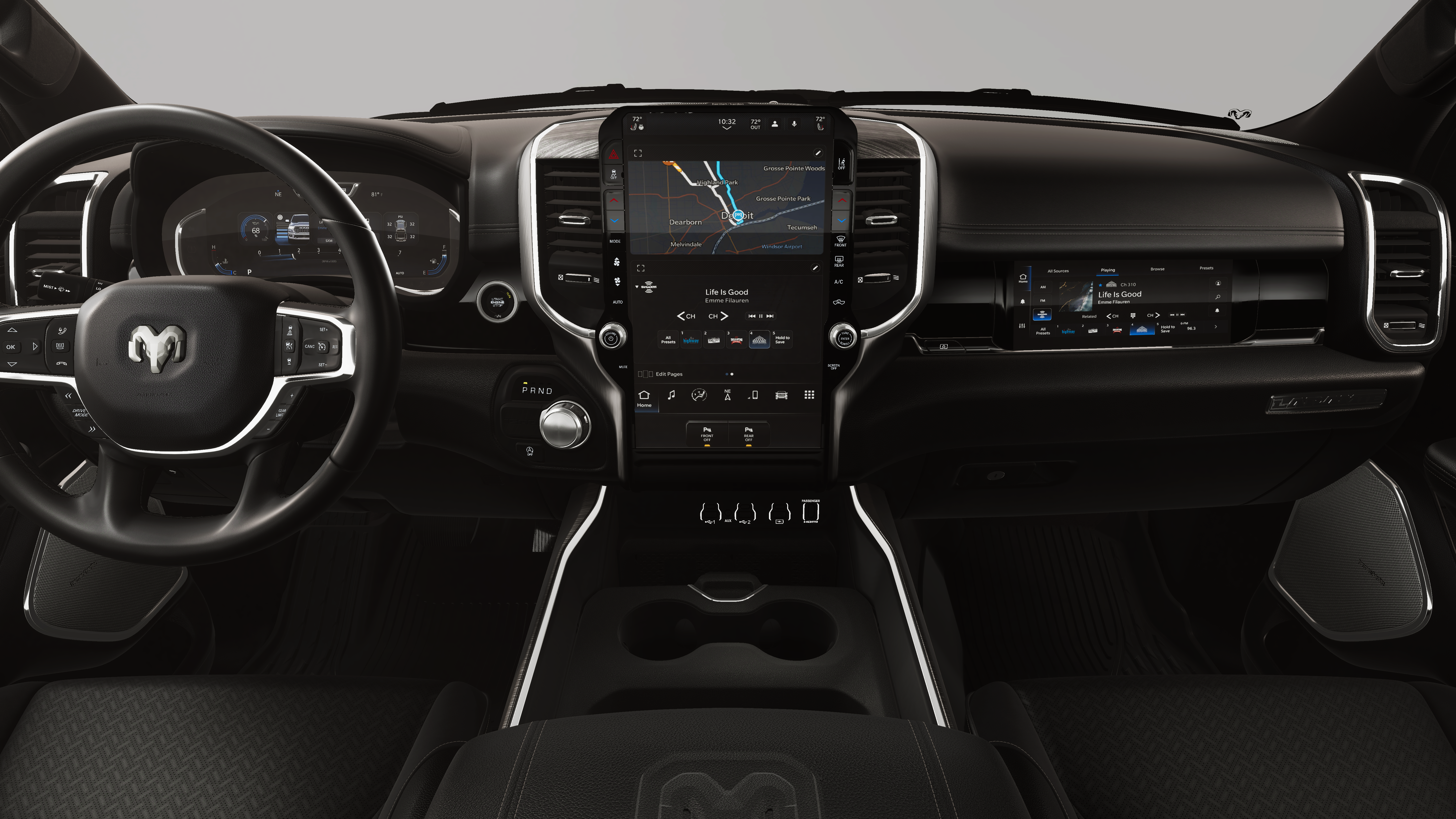 This vehicle comes with the following features and options:Bed Utility Group (Exterior 115V AC Outlet, MOPAR 4 Adjustable Cargo Tie-Down Hooks, and MOPAR Spray in Bedliner), Laramie Level 2 Equipment Group (14.4 Touchscreen Display, 4G LTE Wi-Fi Hot Spot, Cluster 12 TFT Color Display, Connected Travel and Traffic Services, Connectivity - US/Canada, Front Passenger Interactive Display, GPS Navigation, Harman/Kardon 19 Speaker Premium Sound, Integrated Center Stack Radio, Integrated Voice Command with Bluetooth®, Power Tailgate, Radio: Uconnect 5 Nav with 14.4 Display, Rain Sensitive Windshield Wipers, SiriusXM Radio Service, SiriusXM with 360L, and USB Host Flip), Night Edition (Accent Color Door Handles, Accent Color Premium Power Mirrors, Accent Color Tailgate Handle, Anti-Spin Differential Rear Axle, Auto Power-Folding Mirrors, Auto-Dimming Exterior Driver Mirror, Black Exterior Truck Badging, Black Headlamp Bezels, Black Interior Accents, Black Painted Exterior Mirrors Caps, Black Tail Lamp Bezels, Body Color Front Bumper, Body Color Rear Bumper with Step Pads, Convex Wide-Angle Exterior Mirror Insert, Dual Exhaust with Black Tips, Exterior Mirrors Approach Lamps, Exterior Mirrors Courtesy Lamps, Exterior Mirrors with Heating Element, Exterior Mirrors with Memory, Exterior Mirrors with Supplemental Signals, Grille Surround 3 Black Texture 2 Black, Pirelli Brand Tires, Proximity Approach/Departure Lamps, RAM Grille Badge - Black, Sport Performance Hood, and Wheels: 22 x 9 Forged Aluminum), Quick Order Package 21H Laramie, 10 Speakers, 3.21 Rear Axle Ratio, 4-Wheel Disc Brakes, ABS brakes, Air Conditioning, Alloy wheels, AM/FM radio: SiriusXM with 360L, Apple CarPlay/Android Auto, Audio memory, Auto High-beam Headlights, Auto-dimming door mirrors, Auto-dimming Rear-View mirror, Automatic temperature control, Brake assist, Bumpers: chrome, Chrome Exterior Mirrors, Compass, Delay-off headlights, Driver door bin, Driver vanity mirror, Dual front impact airbags, Dual front side impact airbags, Electronic Stability Control, Exterior Parking Camera Rear, Front anti-roll bar, Front Bucket Seats, Front Center Armrest w/Storage, Front dual zone A/C, Front fog lights, Front reading lights, Front wheel independent suspension, Fully automatic headlights, Garage door transmitter, Heated door mirrors, Heated front seats, Heated rear seats, Heated steering wheel, Illuminated entry, Leather steering wheel, Leather Trimmed Bucket Seats, Low tire pressure warning, Memory seat, MOPAR Front and Rear Rubber Floor Mats, MyFlexCare Service Plan, Navigation System, Occupant sensing airbag, Outside temperature display, Overhead airbag, Overhead console, Panic alarm, Passenger door bin, Passenger vanity mirror, Power door mirrors, Power driver seat, Power passenger seat, Power steering, Power windows, Radio data system, Radio: Uconnect 5 Navigation with 12.0 Display, RAM Grille Badge - Chrome, Rear anti-roll bar, Rear reading lights, Rear seat center armrest, Rear step bumper, Remote keyless entry, Security system, Speed control, Split folding rear seat, Steering wheel mounted audio controls, Tachometer, Telescoping steering wheel, Tilt steering wheel, Traction control, Trip computer, Turn signal indicator mirrors, Variably intermittent wipers, Ventilated front seats, Voltmeter, and Wheels: 20 x 9 Premium Paint/Polish.