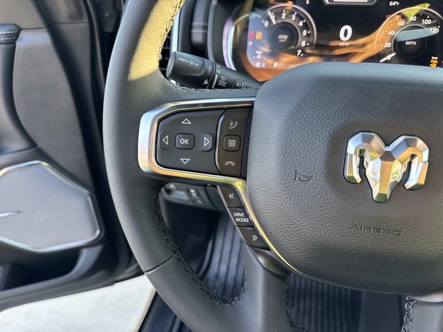This vehicle comes with the following features and options:Bed Utility Group (Exterior 115V AC Outlet, MOPAR 4 Adjustable Cargo Tie-Down Hooks, and MOPAR Spray in Bedliner), Laramie Level 2 Equipment Group (14.4 Touchscreen Display, 4G LTE Wi-Fi Hot Spot, Cluster 12 TFT Color Display, Connected Travel and Traffic Services, Connectivity - US/Canada, Front Passenger Interactive Display, GPS Navigation, Harman/Kardon 19 Speaker Premium Sound, Integrated Center Stack Radio, Integrated Voice Command with Bluetooth®, Power Tailgate, Radio: Uconnect 5 Nav with 14.4 Display, Rain Sensitive Windshield Wipers, SiriusXM Radio Service, SiriusXM with 360L, and USB Host Flip), Quick Order Package 21H Laramie, Sport Appearance Package (Accent Color Premium Power Mirrors, Auto Power-Folding Mirrors, Auto-Dimming Exterior Driver Mirror, Black Interior Accents, Black Painted Exterior Mirrors Caps, Body Color Front Bumper, Body Color Rear Bumper with Step Pads, Bridgestone Brand Tires, Convex Wide-Angle Exterior Mirror Insert, Exterior Mirrors Courtesy Lamps, Exterior Mirrors with Heating Element, Exterior Mirrors with Memory, Exterior Mirrors with Supplemental Signals, Grille Surround 3 Body Color Tex 2 Black, RAM Grille Badge - Chrome, and Sport Performance Hood), 10 Speakers, 3.55 Rear Axle Ratio, 4-Wheel Disc Brakes, ABS brakes, Active Noise Control System, Adjustable pedals, Air Conditioning, Alloy wheels, AM/FM radio: SiriusXM with 360L, Anti-Spin Differential Rear Axle, Apple CarPlay/Android Auto, Audio memory, Auto High-beam Headlights, Auto-dimming door mirrors, Auto-dimming Rear-View mirror, Automatic temperature control, Brake assist, Bumpers: chrome, Chrome Exterior Mirrors, Compass, Delay-off headlights, Driver door bin, Driver vanity mirror, Dual front impact airbags, Dual front side impact airbags, Electronic Stability Control, Front anti-roll bar, Front Bucket Seats, Front Center Armrest w/Storage, Front dual zone A/C, Front fog lights, Front reading lights, Front wheel independent suspension, Fully automatic headlights, Garage door transmitter, Heated door mirrors, Heated front seats, Heated rear seats, Heated steering wheel, Illuminated entry, Leather steering wheel, Leather Trimmed Bucket Seats, Low tire pressure warning, Memory seat, MOPAR Front and Rear Rubber Floor Mats, MyFlexCare Service Plan, Navigation System, Occupant sensing airbag, Off-Road Information Pages, Outside temperature display, Overhead airbag, Overhead console, Panic alarm, ParkView Rear Back-Up Camera, Passenger door bin, Passenger vanity mirror, Pedal memory, Power door mirrors, Power driver seat, Power passenger seat, Power steering, Power windows, Radio data system, Radio: Uconnect 5 Navigation with 12.0 Display, Rear anti-roll bar, Rear reading lights, Rear seat center armrest, Rear step bumper, Remote keyless entry, Security system, Speed control, Split folding rear seat, Steering wheel mounted audio controls, Tachometer, Telescoping steering wheel, Tilt steering wheel, Traction control, Trip computer, Turn signal indicator mirrors, Variably intermittent wipers, Ventilated front seats, Voltmeter, and Wheels: 20 x 9 Premium Paint/Polish.