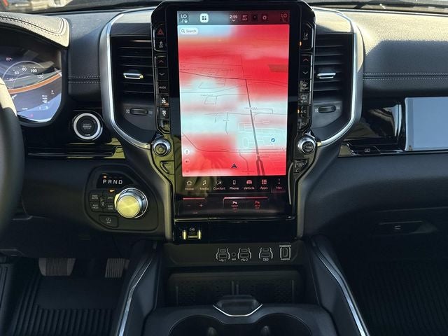 This vehicle comes with the following features and options:Bed Utility Group (Exterior 115V AC Outlet, MOPAR 4 Adjustable Cargo Tie-Down Hooks, and MOPAR Spray in Bedliner), Laramie Level 2 Equipment Group (14.4 Touchscreen Display, 4G LTE Wi-Fi Hot Spot, Cluster 12 TFT Color Display, Connected Travel and Traffic Services, Connectivity - US/Canada, Front Passenger Interactive Display, GPS Navigation, Harman/Kardon 19 Speaker Premium Sound, Integrated Center Stack Radio, Integrated Voice Command with Bluetooth®, Power Tailgate, Radio: Uconnect 5 Nav with 14.4 Display, Rain Sensitive Windshield Wipers, SiriusXM Radio Service, SiriusXM with 360L, and USB Host Flip), Night Edition (Accent Color Door Handles, Accent Color Premium Power Mirrors, Accent Color Tailgate Handle, Anti-Spin Differential Rear Axle, Auto Power-Folding Mirrors, Auto-Dimming Exterior Driver Mirror, Black Exterior Truck Badging, Black Headlamp Bezels, Black Interior Accents, Black Painted Exterior Mirrors Caps, Black Tail Lamp Bezels, Body Color Front Bumper, Body Color Rear Bumper with Step Pads, Convex Wide-Angle Exterior Mirror Insert, Dual Exhaust with Black Tips, Exterior Mirrors Approach Lamps, Exterior Mirrors Courtesy Lamps, Exterior Mirrors with Heating Element, Exterior Mirrors with Memory, Exterior Mirrors with Supplemental Signals, Grille Surround 3 Black Texture 2 Black, Pirelli Brand Tires, Proximity Approach/Departure Lamps, RAM Grille Badge - Black, Sport Performance Hood, and Wheels: 22 x 9 Forged Aluminum), Quick Order Package 27H Laramie, 10 Speakers, 33 Gallon Fuel Tank, 4-Wheel Disc Brakes, ABS brakes, Active Noise Control System, Air Conditioning, Alloy wheels, AM/FM radio: SiriusXM with 360L, Apple CarPlay/Android Auto, Audio memory, Auto High-beam Headlights, Auto-dimming door mirrors, Auto-dimming Rear-View mirror, Automatic temperature control, Brake assist, Bumpers: chrome, Chrome Exterior Mirrors, Compass, Delay-off headlights, Driver door bin, Driver vanity mirror, Dual front impact airbags, Dual front side impact airbags, Electronic Stability Control, Front anti-roll bar, Front Bucket Seats, Front Center Armrest w/Storage, Front dual zone A/C, Front fog lights, Front reading lights, Front wheel independent suspension, Fully automatic headlights, Garage door transmitter, Heated door mirrors, Heated front seats, Heated rear seats, Heated steering wheel, Illuminated entry, Leather steering wheel, Leather Trimmed Bucket Seats, Low tire pressure warning, Memory seat, MOPAR Front and Rear Rubber Floor Mats, MyFlexCare Service Plan, Navigation System, Occupant sensing airbag, Off-Road Information Pages, Outside temperature display, Overhead airbag, Overhead console, Panic alarm, ParkView Rear Back-Up Camera, Passenger door bin, Passenger vanity mirror, Power Deployable Running Boards, Power door mirrors, Power driver seat, Power passenger seat, Power steering, Power windows, Radio data system, Radio: Uconnect 5 Navigation with 12.0 Display, RAM Grille Badge - Chrome, Rear anti-roll bar, Rear reading lights, Rear seat center armrest, Rear step bumper, Remote keyless entry, Security system, Speed control, Split folding rear seat, Steering wheel mounted audio controls, Tachometer, Telescoping steering wheel, Tilt steering wheel, Traction control, Trailer Brake Control, Trip computer, Turn signal indicator mirrors, Variably intermittent wipers, Ventilated front seats, Voltmeter, and Wheels: 20 x 9 Premium Paint/Polish.