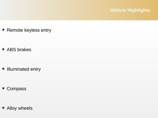 ABS brakes, Alloy wheels, Compass, Illuminated entry, Remote keyless entry.