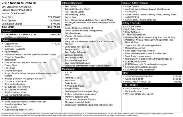 - Nissan Advanced Airbag System (AABS)-inc: driver & front passenger dual-stage airbags & side-impact supplemental airbags, front & rear roof- mounted curtain side-impact supplemental airbags