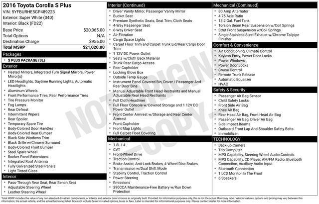 2016 Toyota Corolla S Plus