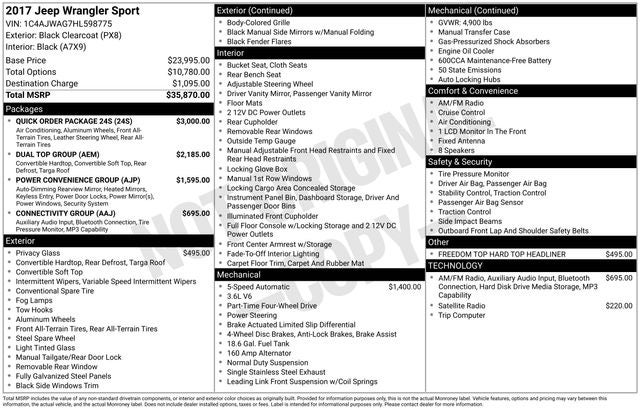 Whether you're seeking the ultimate off-road adventurer or a capable daily driver, this 2017 Jeep Wrangler Sport delivers uncompromising performance and premium features. Experience the thrill of Jeep ownership today - schedule a test drive and discover how this Wrangler can enhance your driving experience.