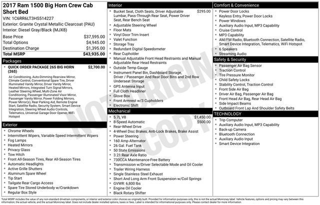 With its exceptional performance, advanced technology, and premium amenities, this 2017 Ram 1500 Big Horn is the ideal choice for those seeking a versatile and capable pickup. Experience the difference for yourself by scheduling a test drive today. We're confident you'll be impressed by this remarkable vehicle.