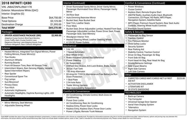Experience the uncompromising luxury and capability of the 2018 INFINITI QX80 Base. Visit our showroom today and let us demonstrate how this exceptional vehicle can elevate your driving experience.