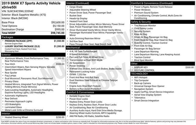 - Tires P275/40YR22 run-flat performance BSW front tires and P315/35YR22 run-flat performance BSW rear tires