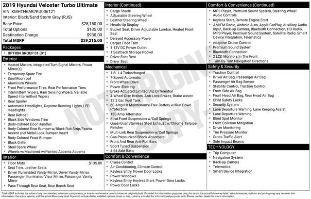 4-Wheel Disc Brakes, 8 Speakers, ABS brakes, Air Conditioning, Alloy wheels, AM/FM radio: SiriusXM, Apple CarPlay & Android Auto, Automatic temperature control, Brake assist, Bumpers: body-color, Carpeted Floor Mats, Delay-off headlights, Driver door bin, Driver vanity mirror, Dual front impact airbags, Dual front side impact airbags, Electronic Stability Control, Emergency communication system: Blue Link, Exterior Parking Camera Rear, Four wheel independent suspension, Front anti-roll bar, Front Bucket Seats, Front Center Armrest, Front reading lights, Fully automatic headlights, HEADS-UP DISPLAY, Heated door mirrors, Heated Front Bucket Seats, HEATED FRONT SEATS, Illuminated entry, Leather Seat Trim, Leather Shift Knob, Leather steering wheel, Low tire pressure warning, NAVIGATION, Occupant sensing airbag, Outside temperature display, Overhead airbag, Overhead console, Panic alarm, Passenger door bin, Passenger vanity mirror, Power door mirrors, Power moonroof, Power steering, Power windows, Premium audio system: Infinity, Radio: AM/FM 8 Navigation Display Audio (AVN 5.0), Rain sensing wipers, Rear anti-roll bar, Rear window defroster, Rear window wiper, Remote keyless entry, Security system, Speed control, Speed-sensing steering, Split folding rear seat, Spoiler, Steering wheel mounted audio controls, Tachometer, Telescoping steering wheel, Tilt steering wheel, Traction control, Trip computer, Turn signal indicator mirrors, Variably intermittent wipers, Wheels: 18 x 7.5J Alloy (C-Type).