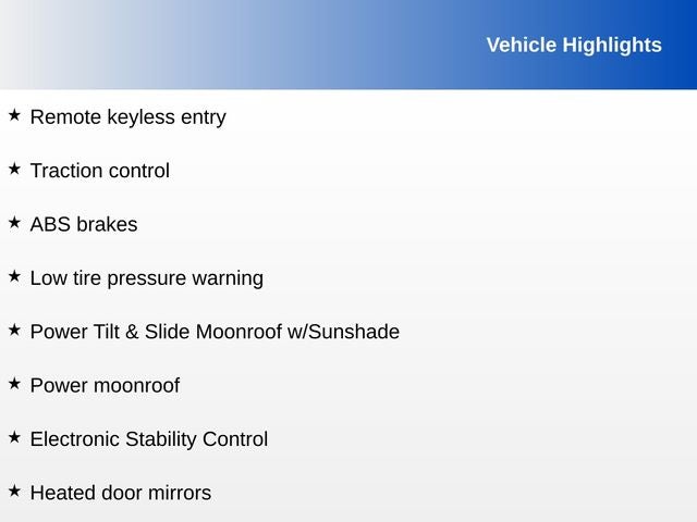 - Power Tilt & Slide Moonroof w/Sunshade