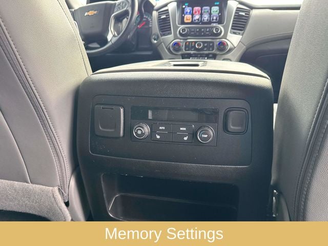 18 x 8.5 Aluminum Wheels, 1st & 2nd Row Color-Keyed Carpeted Floor Mats, 2nd Row 60/40 Split-Folding Manual Bench, 2nd Row Pwr Release 60/40 Split Folding Bench Seat, 3.08 Rear Axle Ratio, 3.42 Rear Axle Ratio, 3rd Row 60/40 Power Fold Split-Bench, 3rd Row Manual 60/40 Split-Folding Fold Flat Bench, 3rd row seats: split-bench, 4-Wheel Antilock Disc Brakes w/Brake Assist, 4-Wheel Disc Brakes, 5 12-Volt Auxiliary Power Outlets, 9 Speakers, ABS brakes, Adjustable pedals, Air Conditioning, Alloy wheels, AM/FM radio: SiriusXM, Apple CarPlay/Android Auto, Auto High-beam Headlights, Auto-Dimming Inside Rear-View Mirror, Auto-dimming Rear-View mirror, Automatic Emergency Braking, Automatic temperature control, Black Assist Steps, Bluetooth® for Phone, Bose Premium 9-Speaker System, Brake assist, Bumpers: body-color, Cargo Net, CD player, Color-Keyed Carpeting Floor Covering, Compass, Delay-off headlights, Driver door bin, Driver Inboard & Front Passenger Airbags, Driver vanity mirror, Dual front impact airbags, Dual front side impact airbags, Electronic Cruise Control w/Set & Resume Speed, Electronic Stability Control, Emergency communication system: OnStar and Chevrolet connected services capable, Enhanced Driver Alert Package (Y86), Extended-Range Remote Keyless Entry, Exterior Parking Camera Rear, Floor Console, Fog Lamps, Forward Collision Alert, Front & Rear Park Assist, Front anti-roll bar, Front Bucket Seats, Front Center Armrest, Front dual zone A/C, Front Heated Reclining Bucket Seats, Front Passenger 6-Way Power Seat Adjuster, Front reading lights, Front wheel independent suspension, Fully automatic headlights, Garage door transmitter, Hands Free Power Liftgate, HD Radio, Heated 2nd Row Outboard Seats, Heated door mirrors, Heated front seats, Heated Leather Wrapped Steering Wheel, Illuminated entry, Integrated Trailer Brake Controller, IntelliBeam Headlamps, Lane Change Alert w/Side Blind Zone Alert, Lane Keep Assist w/Lane Departure Warning, Leather steering wheel, Leather-Appointed Seat Trim, Leather-Wrapped Steering Wheel, Low tire pressure warning, Luxury Package, Max Trailering Package, Memory seat, Memory Settings, Occupant sensing airbag, Outside temperature display, Overhead airbag, Overhead console, Panic alarm, Passenger door bin, Passenger vanity mirror, Passive Entry System, Pedal memory, Power door mirrors, Power driver seat, Power Liftgate, Power passenger seat, Power steering, Power Tilt & Telescopic Steering Column w/Memory, Power windows, Power-Adjustable Accelerator & Brake Pedals, Power-Folding Heated Outside Mirrors, Preferred Equipment Group 1LT, Premium audio system: Chevrolet MyLink, Premium Smooth Ride Suspension Package, Push Button Keyless Start, Radio: Chevrolet Infotainment AM/FM Stereo, Rain sensing wipers, Rear air conditioning, Rear anti-roll bar, Rear Cross Traffic Alert, Rear Park Assist w/Audible Warning, Rear reading lights, Rear seat center armrest, Rear window defroster, Rear window wiper, Remote keyless entry, Remote Vehicle Start, Roof-Mounted Luggage Rack Side Rails, Security system, Single-Slot CD/MP3 Player, SiriusXM Radio, Speed control, Speed-sensing steering, Split folding rear seat, Spoiler, Standard Suspension Package, Steering wheel mounted audio controls, Tachometer, Telescoping steering wheel, Tilt steering wheel, Traction control, Trip computer, Universal Home Remote, Variably intermittent wipers, Voltmeter, Wheels: 20 x 9 Polished-Aluminum.