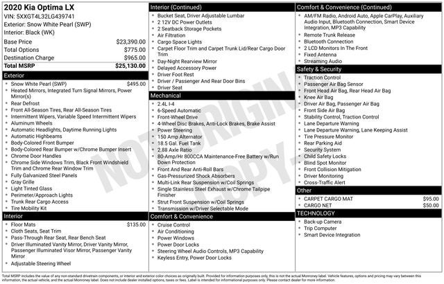 With a list price of just $13,949, this 2020 Kia Optima LX represents an exceptional value in the mid-size sedan segment. Don't miss the opportunity to experience the perfect balance of style, technology, and affordability. Visit our showroom today and let us demonstrate why this Optima should be at the top of your consideration list.