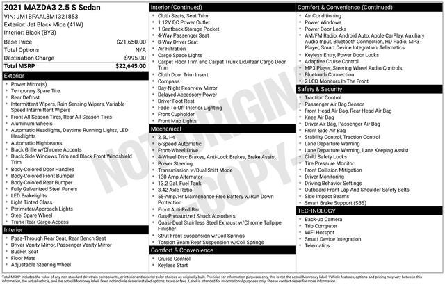 - Vehicle Name: Mazda Mazda3 Sedan