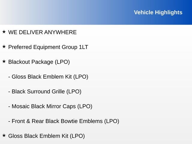- 4G LTE Wi-Fi Hotspot capable (Terms and limitations apply. See onstar.com or dealer for details.)