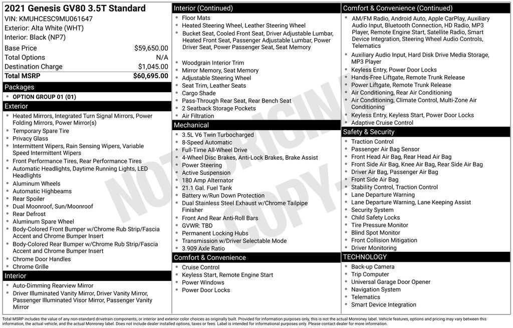 - Radio: AM/FM/SiriusXM/HD Premium Audio System -inc: internal amplifier, integrated navigation, 14.5" HD LCD screen, Apple Carplay and Android Auto, Bluetooth® hands-free phone system w/audio streaming, steering wheel controls, 2 front and 2 rear USB ports, 2 12v power outlets, front wireless device charger and Genesis Connected Services