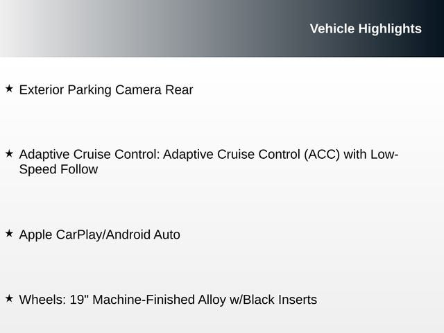 - Wheels: 19" Machine-Finished Alloy w/Black Inserts