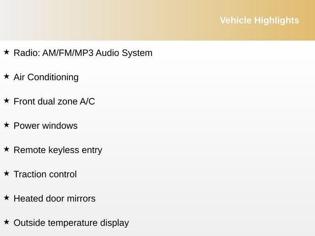 - Radio: AM/FM/MP3 Audio System -inc: 6 speakers, 8" display screen, HD Radio, USB ports, Bluetooth® wireless technology, wireless Android Auto and Apple CarPlay