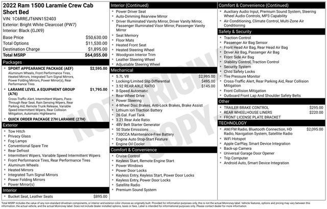 Whether you're hauling heavy loads, towing a trailer, or simply enjoying the open road, this 2022 Ram 1500 Laramie is the ultimate companion. Experience the perfect blend of power, technology, and refined style. Visit our showroom today and let us demonstrate why this exceptional pickup should be your next vehicle.
