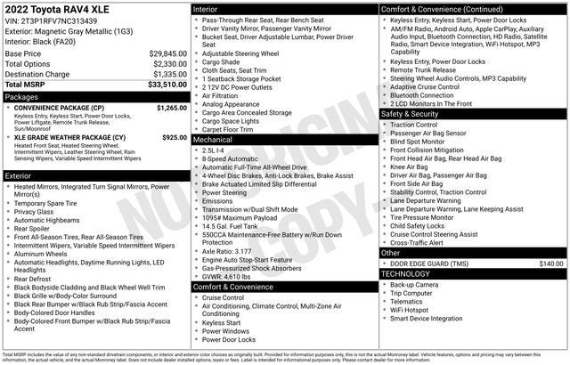 4-Wheel Disc Brakes, 6 Speakers, ABS brakes, Air Conditioning, Alloy wheels, AM/FM radio: SiriusXM, AM/FM Stereo, Apple CarPlay/Android Auto, Auto High-beam Headlights, Automatic temperature control, Axle Ratio: 3.177, Brake assist, Bumpers: body-color, Delay-off headlights, Driver door bin, Driver vanity mirror, Dual front impact airbags, Dual front side impact airbags, Electronic Stability Control, Emergency communication system: Safety Connect with 1-year trial, Exterior Parking Camera Rear, Fabric Seat Trim, Four wheel independent suspension, Front anti-roll bar, Front Bucket Seats, Front Center Armrest, Front dual zone A/C, Front reading lights, Fully automatic headlights, Heated door mirrors, Illuminated entry, Knee airbag, Low tire pressure warning, Occupant sensing airbag, Outside temperature display, Overhead airbag, Overhead console, Panic alarm, Passenger door bin, Passenger vanity mirror, Power door mirrors, Power driver seat, Power steering, Power windows, Radio data system, Rear anti-roll bar, Rear seat center armrest, Rear window defroster, Rear window wiper, Remote keyless entry, Roof rack: rails only, Speed control, Speed-sensing steering, Split folding rear seat, Spoiler, Steering wheel mounted audio controls, Tachometer, Telescoping steering wheel, Tilt steering wheel, Traction control, Trip computer, Turn signal indicator mirrors, Variably intermittent wipers, Wheels: 17 5-Spoke Silver Alloy.