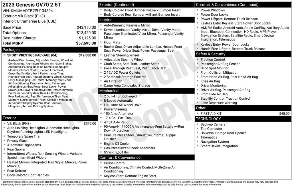- Radio: AM/FM/SiriusXM/HD Premium Audio System -inc: navigation system, 9 speakers, internal amplifier, 14.5" HD display screen, Apple CarPlay and Android Auto, Bluetooth® hands-free phone system w/audio streaming, 4 USB ports and Genesis Connected Services