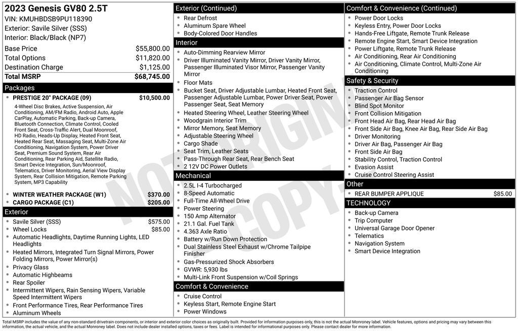 Whether you're commuting in style or embarking on a weekend adventure, this 2023 Genesis GV80 2.5T is the perfect companion. Experience the perfect balance of luxury, performance, and technology – visit our showroom today and let us demonstrate why this SUV is the ultimate choice for the discerning driver.
