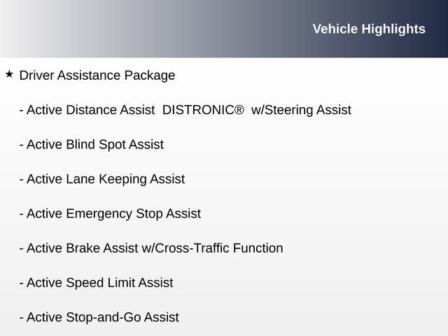 - Active Distance Assist DISTRONIC® w/Steering Assist