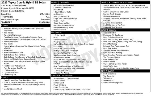 Whether you're commuting to work, running errands, or embarking on a weekend adventure, the 2023 Toyota Corolla Hybrid SE is the perfect companion. With its exceptional fuel efficiency, comprehensive suite of features, and uncompromising quality, this vehicle is sure to exceed your expectations and leave you completely satisfied.