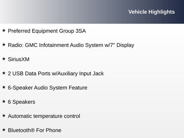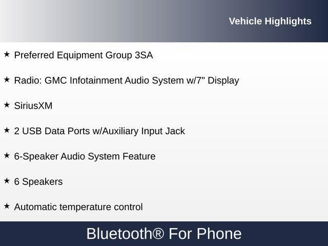 - Audio system, 7" diagonal GMC Infotainment System includes multi-touch display, AM/FM stereo, includes Bluetooth® streaming audio for music and most phones; featuring Android Auto and Apple CarPlay capability for compatible phones