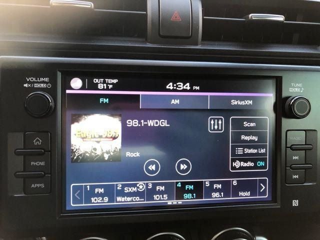 - Radio: Subaru STARLINK 8.0" Multimedia Plus System -inc: AM/FM stereo, HD Radio, multi-touch gesture high resolution display screen, voice activated controls, Bluetooth® audio streaming and hands-free phone connectivity and hands-free SMS text messaging connectivity (refer to subaru.com for cell phone compatibility), Near Field Communication (NFC), iPod control capability, SiriusXM All Access radio (4 months free trial included/subscription required after), SiriusXM Travel Link (4 months free trial included/subscription required after), smartphone integration for Android Auto, Apple CarPlay and STARLINK cloud applications (refer to subaru.com for app availability), USB and Over The Air (OTA) audio system updates, audio system and Bluetooth® steering wheel control switches, 8 speakers, 2-channel amplifier, 3.5mm auxiliary input jack and dual USB A input/charge ports