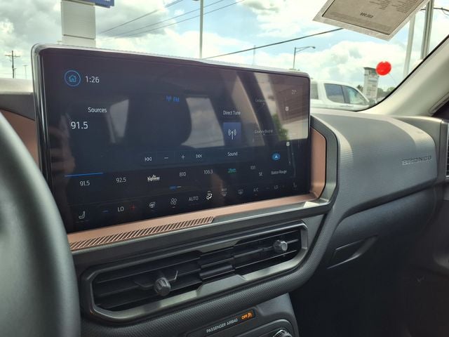Blue Metallic 2025 Ford Bronco Sport Outer Banks 4WD 8-Speed Automatic 1.5L EcoBoost WE DELIVER ANYWHERE, B&O Sound System by Bang & Olufsen, Connected Navigation, Equipment Group 300A, HD Radio, Outer Banks Tech Package+, 360-Degree Camera w/Trail & Split View, 4-Wheel Disc Brakes, 6 Speakers, ABS brakes, Air Conditioning, Alloy wheels, AM/FM radio: SiriusXM, AM/FM Stereo, Auto High-beam Headlights, Auto-dimming Rear-View mirror, Automatic temperature control, Brake assist, Compass, Delay-off headlights, Driver door bin, Driver vanity mirror, Dual front impact airbags, Dual front side impact airbags, Electronic Stability Control, Emergency communication system: SYNC 4 911 Assist, Four wheel independent suspension, Front anti-roll bar, Front Bucket Seats, Front Center Armrest, Front Driver/Passenger Seat Back Map Pockets, Front dual zone A/C, Front fog lights, Front License Plate Bracket, Front Parking Sensors, Front reading lights, Fully automatic headlights, Garage door transmitter, Heated door mirrors, Heated front seats, Heated steering wheel, Illuminated entry, Knee airbag, Low tire pressure warning, Memory seat, Occupant sensing airbag, Outside temperature display, Overhead airbag, Overhead console, Panic alarm, Passenger door bin, Passenger vanity mirror, Power door mirrors, Power driver seat, Power passenger seat, Power steering, Power windows, Premium Trimmed Front Bucket Seats w/Ebony/Roast, Radio data system, Rain sensing wipers, Rear anti-roll bar, Rear Parking Sensors, Rear reading lights, Rear seat center armrest, Rear window defroster, Rear window wiper, Remote keyless entry, Reverse Brake Assist, Security system, SiriusXM, Speed control, Speed-sensing steering, Speed-Sensitive Wipers, Split folding rear seat, Steering wheel mounted audio controls, SYNC 4 w/Enhanced Voice Recognition, Tachometer, Telescoping steering wheel, Tilt steering wheel, Traction control, Trip computer, Variably intermittent wipers, Wheels: 18 Ebony Black-Painted Aluminum, B&O Sound System by Bang & Olufsen, Connected Navigation, Equipment Group 300A, HD Radio, Outer Banks Tech Package+.
