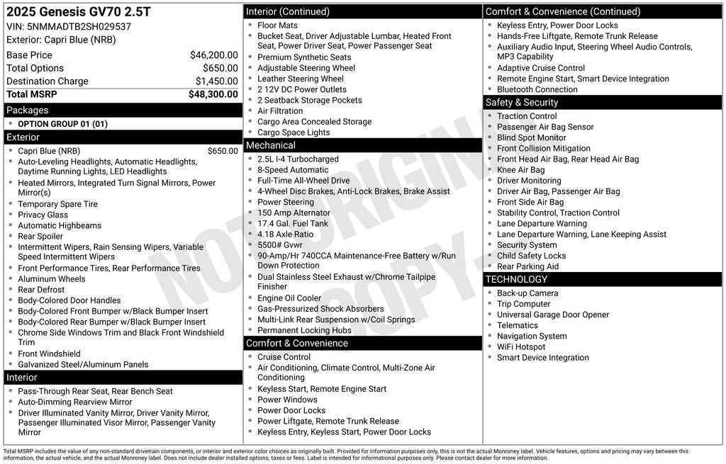 Designed to elevate your driving experience, this 2025 Genesis GV70 2.5T is a true standout in the luxury crossover segment. With its exceptional blend of style, performance, and technology, it's the perfect companion for those who demand the best. We invite you to visit our showroom and experience the GV70 for yourself. Let us demonstrate how this exceptional vehicle can enhance your daily drives and weekend adventures.