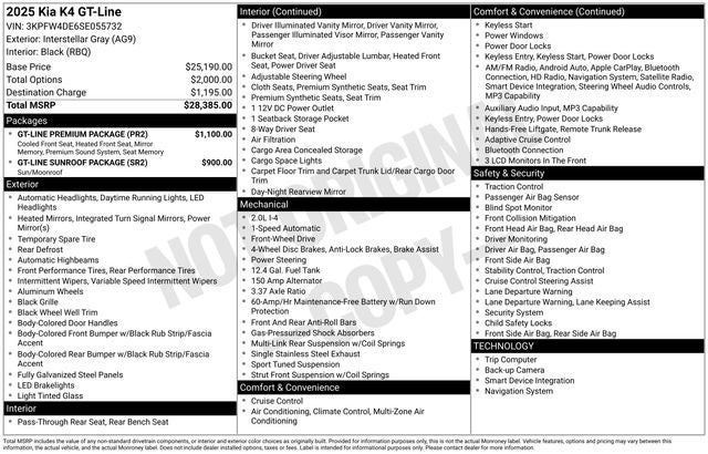 Indulge in the refined comfort of the 2025 Kia K4 GT-Line, featuring: