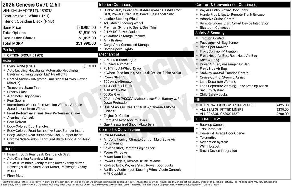 Whether you're commuting, running errands, or embarking on a weekend getaway, the 2026 Genesis GV70 2.5T is the perfect companion. Experience the perfect balance of style, technology, and performance – visit our showroom today and discover the difference for yourself.