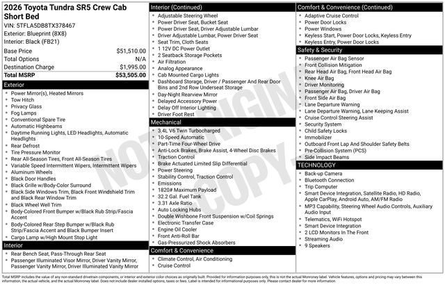 Elevate your driving experience with the impressive capabilities and refined amenities of the 2026 Toyota Tundra SR5. From its powerful engine and advanced technology to its spacious interior and striking good looks, this truck is ready to take on any adventure. Schedule a test drive today and discover the difference for yourself.